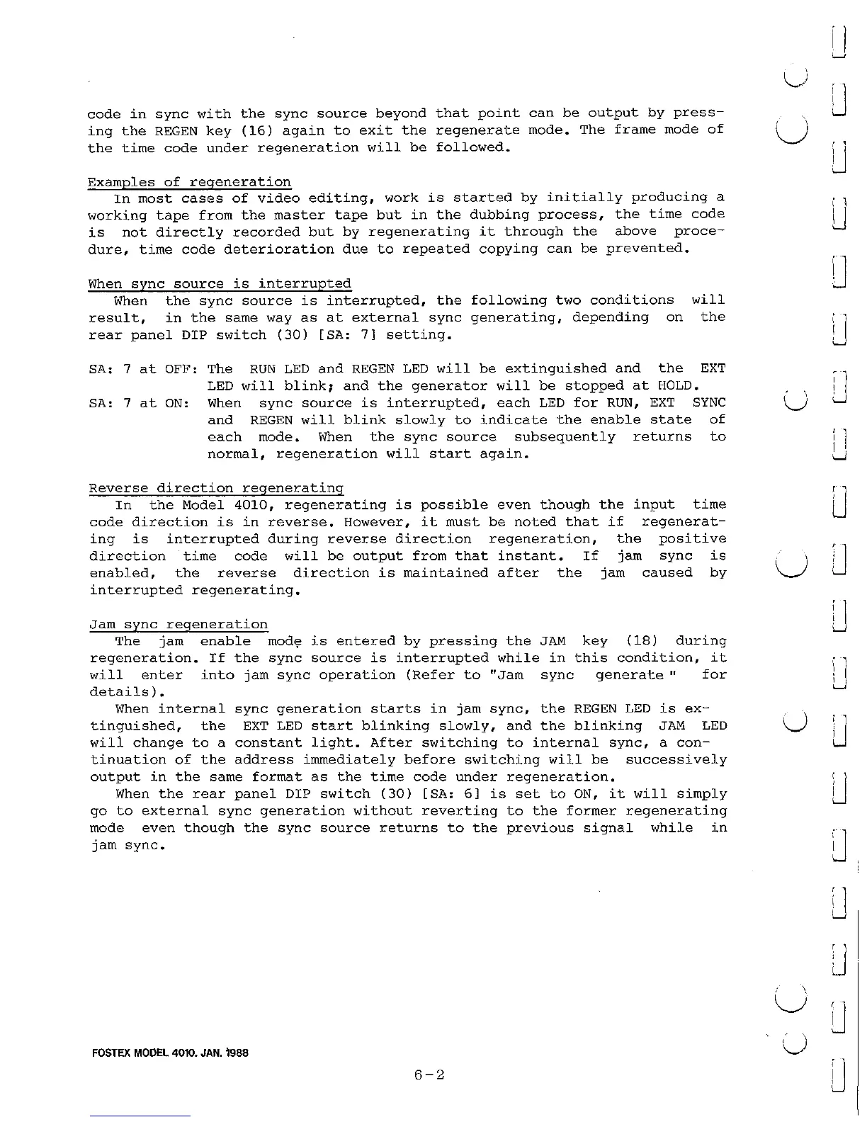 Fostex 4010 - Examples of Regeneration; When Sync Source Is Interrupted; Reverse Direction Regenerating