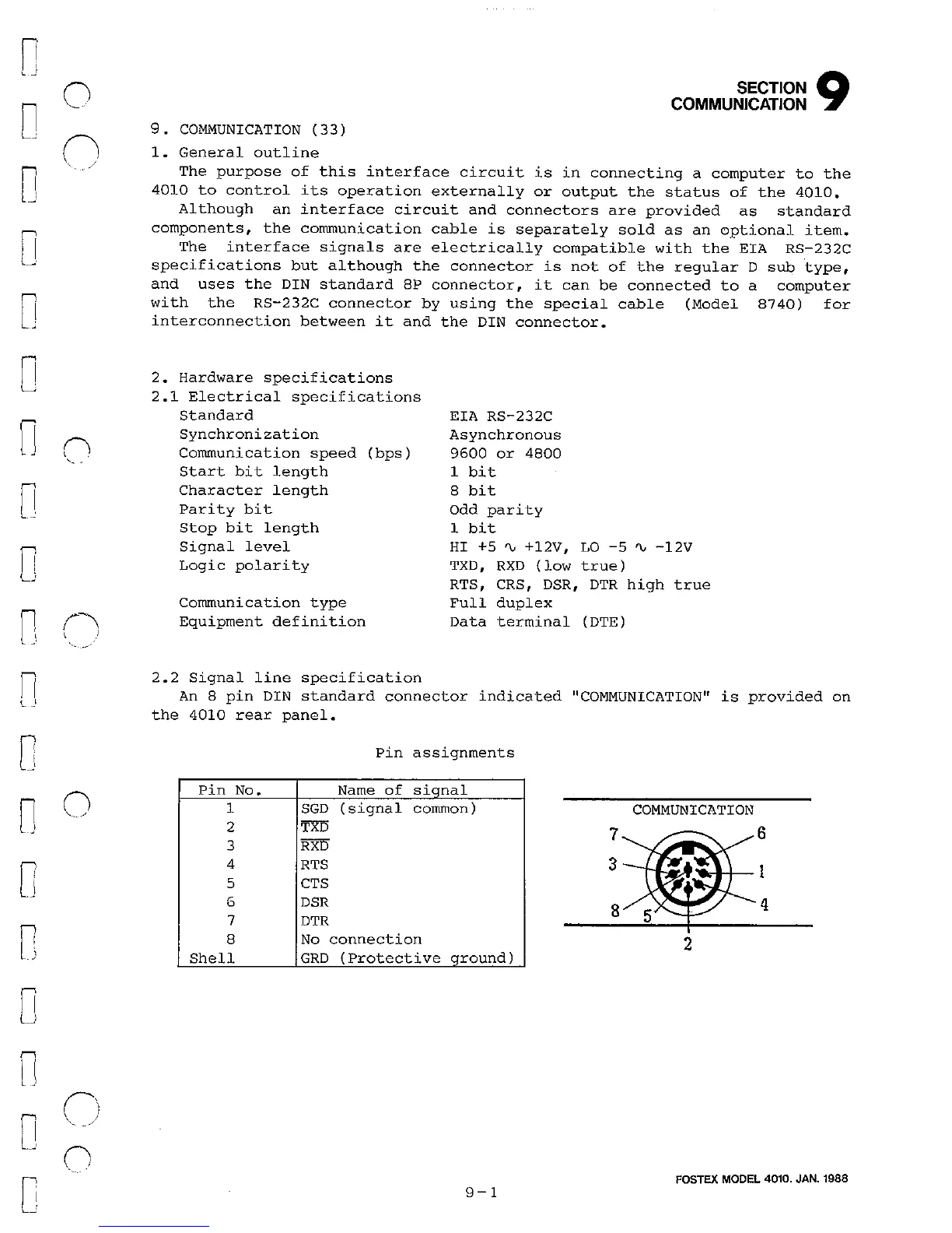 Fostex 4010 - Communication; General Outline; Hardware Specifications; Electrical Specifications