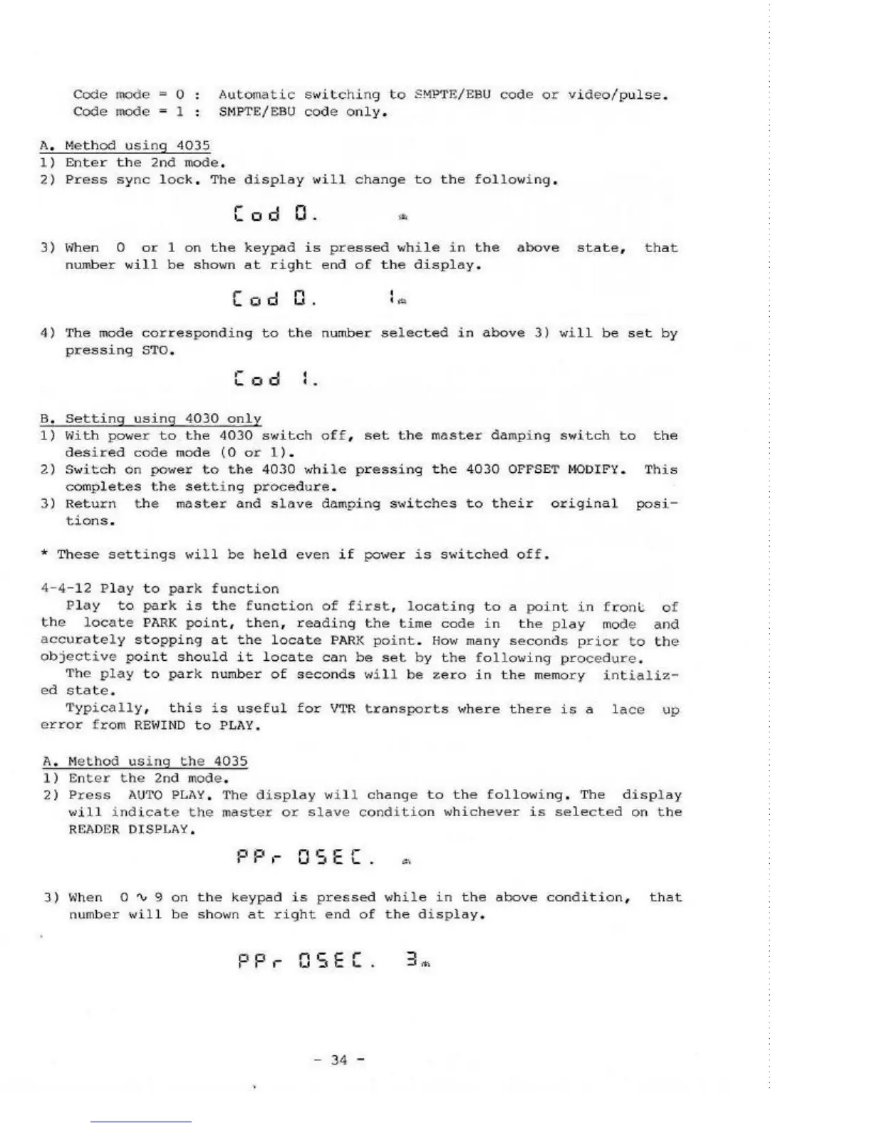 Fostex 4030 - Play to Park Function