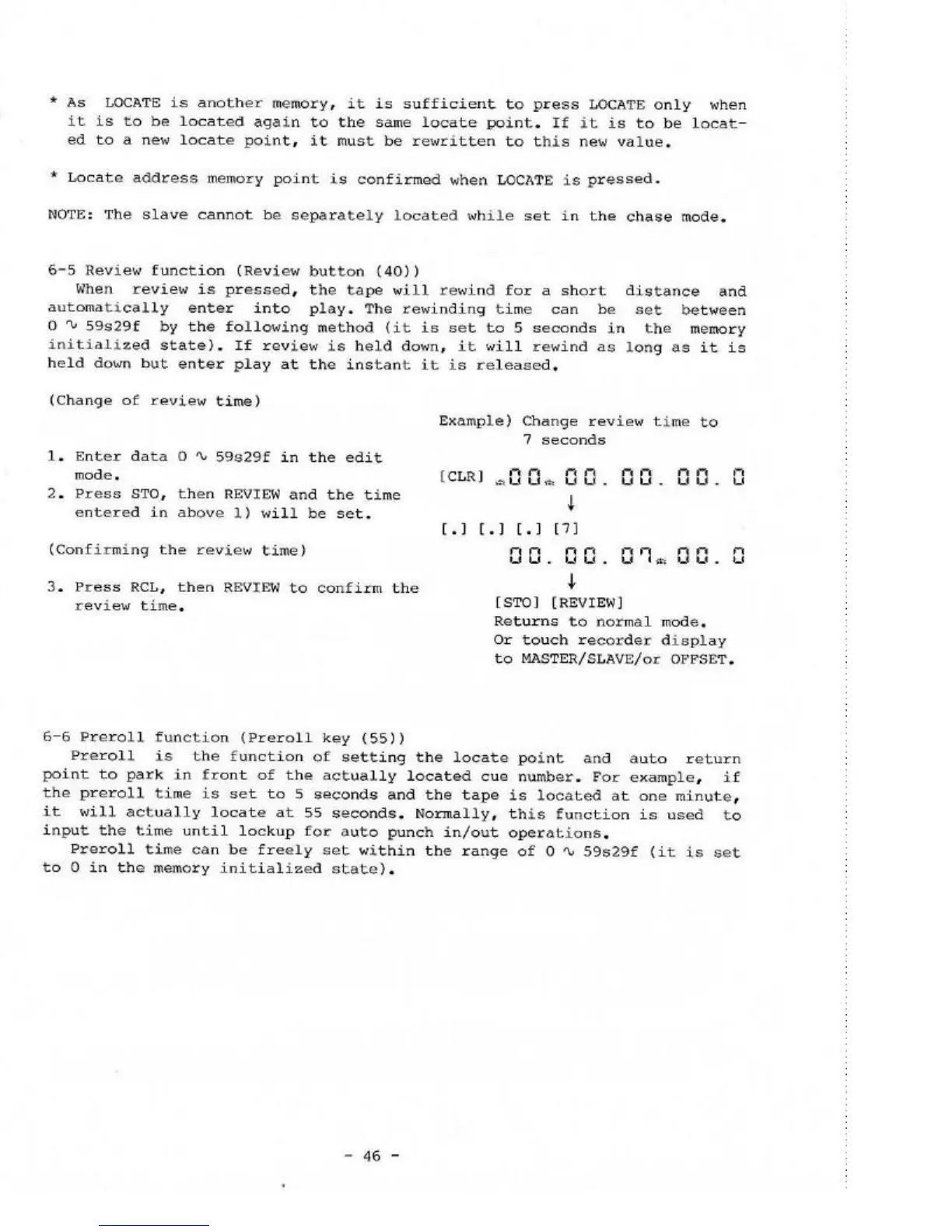 Fostex 4030 - Review Function (Review Button); Preroll Function