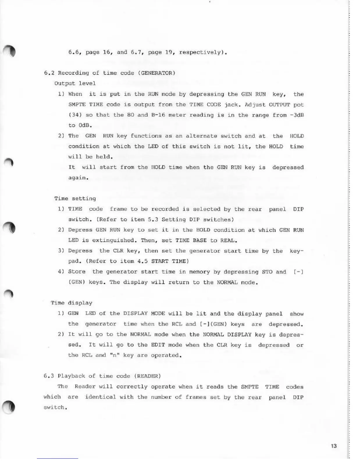 Fostex 4050 - Recording of Time Code; Output Level; Time Setting; Time Display