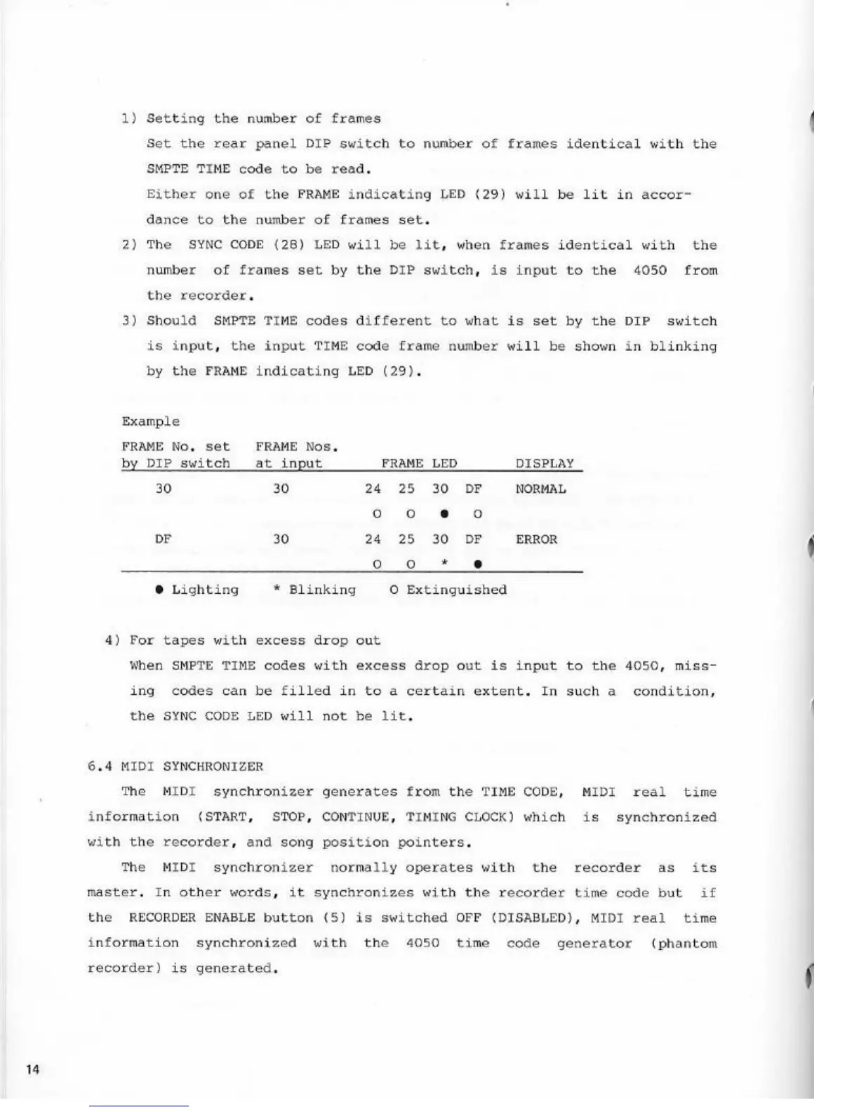 Fostex 4050 - MIDI Synchronizer; Setting the Number of Frames
