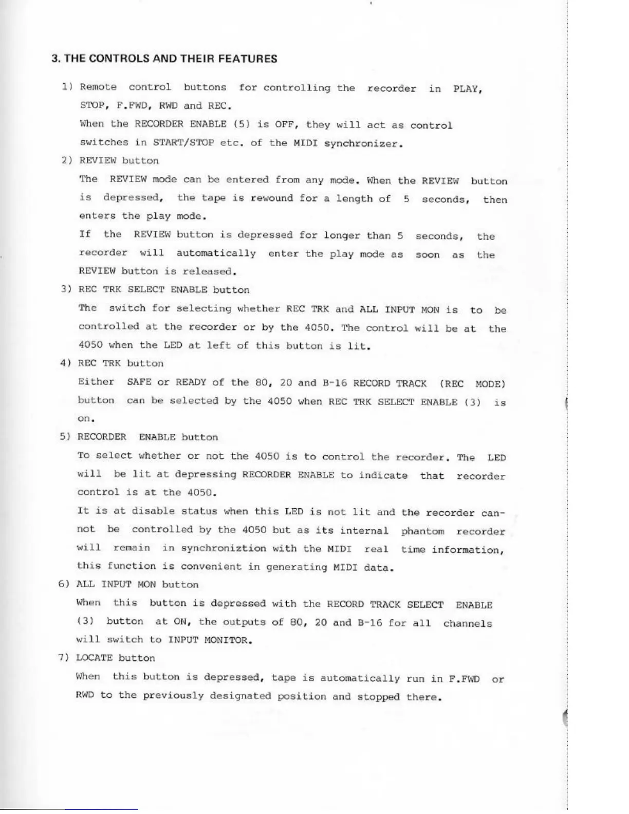 Fostex 4050 - The Controls and Their Features; Recorder Enable Button; All Input Non Button