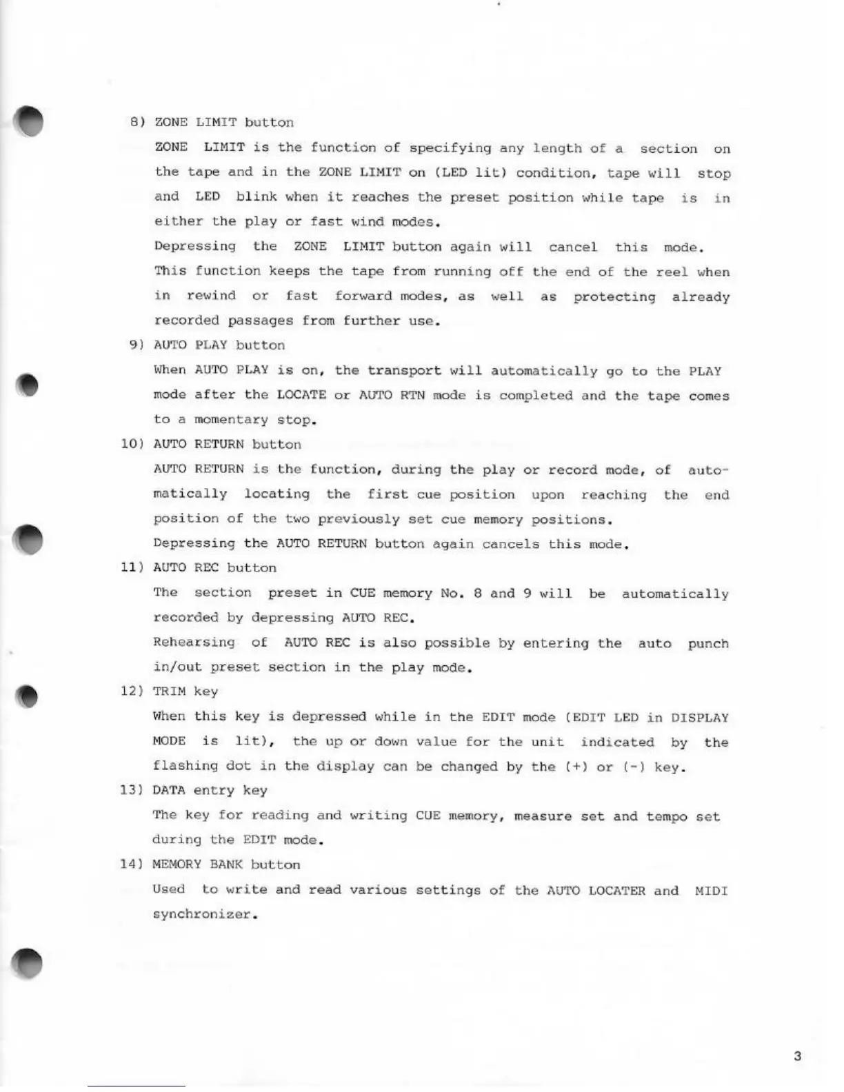 Fostex 4050 - Zone Limit Button; AUTO PLAY Button; AUTO RETURN Button
