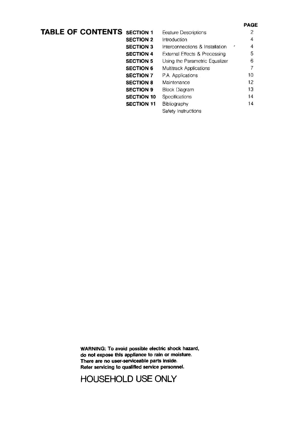 Fostex 450 - Table of Contents