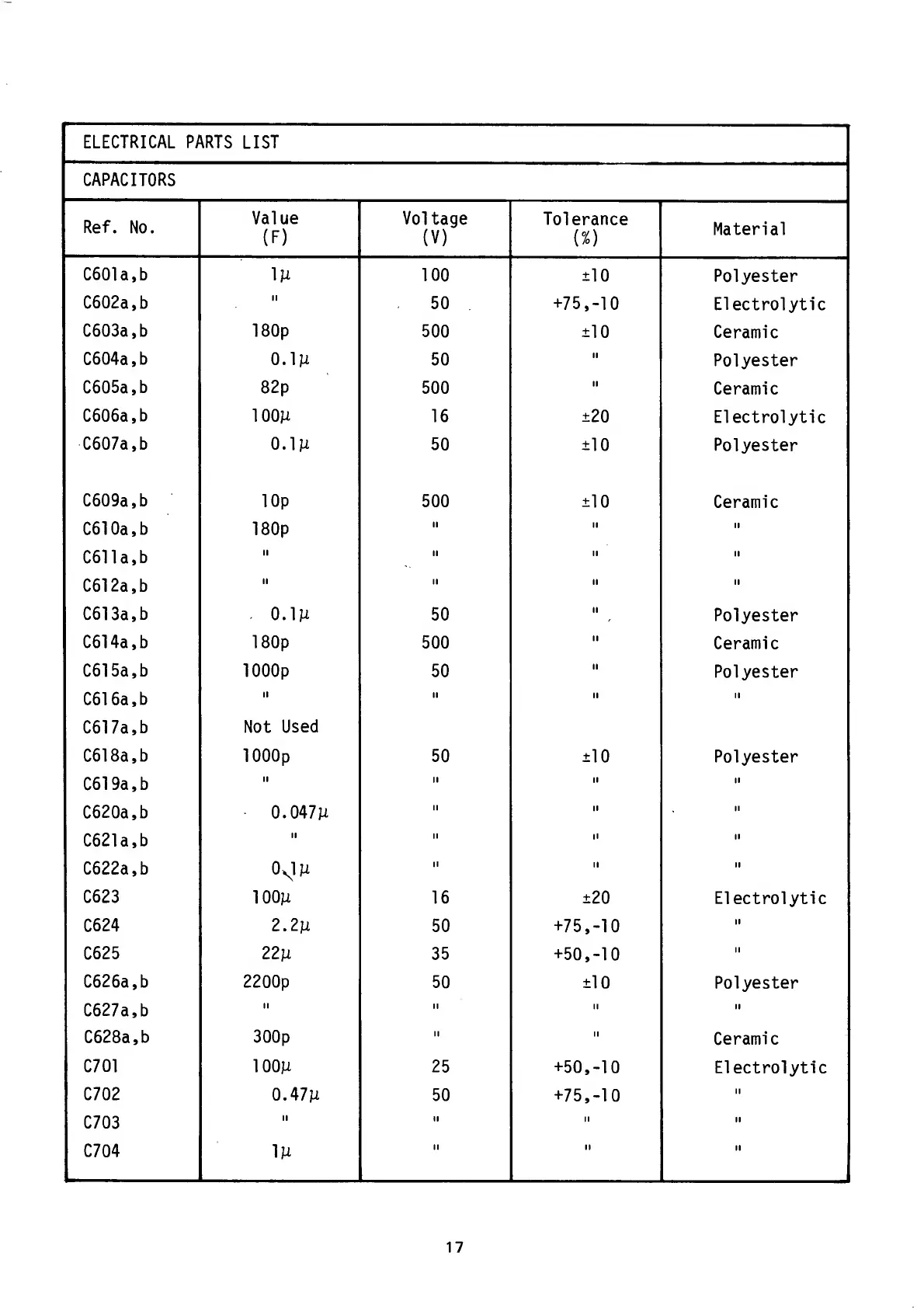 Fostex 600 - ELECTRICAL PARTS LIST; CAPACITORS