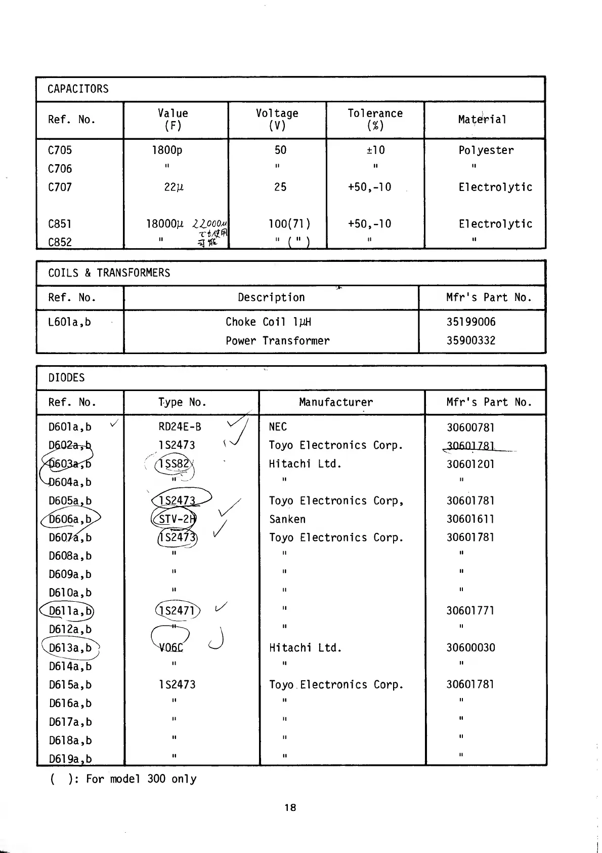 Fostex 600 - COMPONENT LISTS; COILS & TRANSFORMERS; DIODES