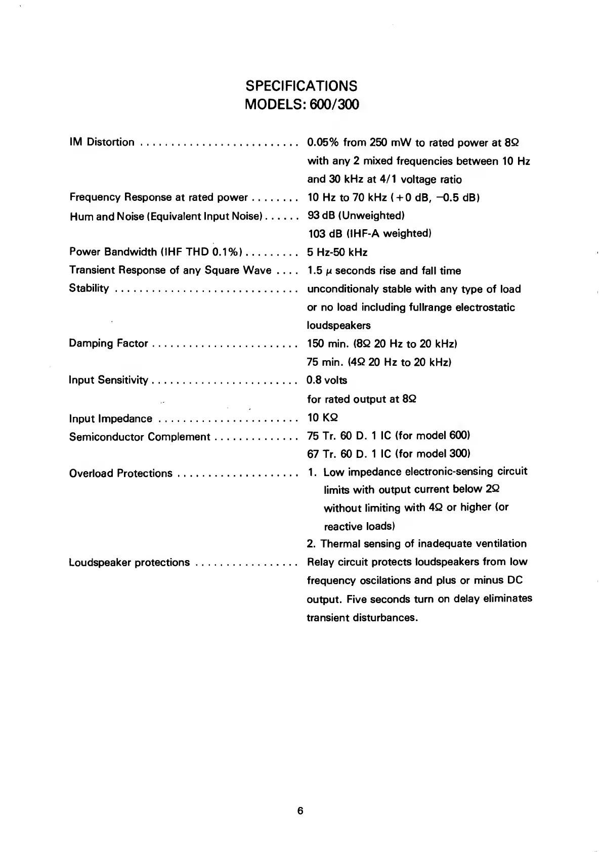 Fostex 600 - TECHNICAL SPECIFICATIONS; IM Distortion; Frequency Response; Overload Protections