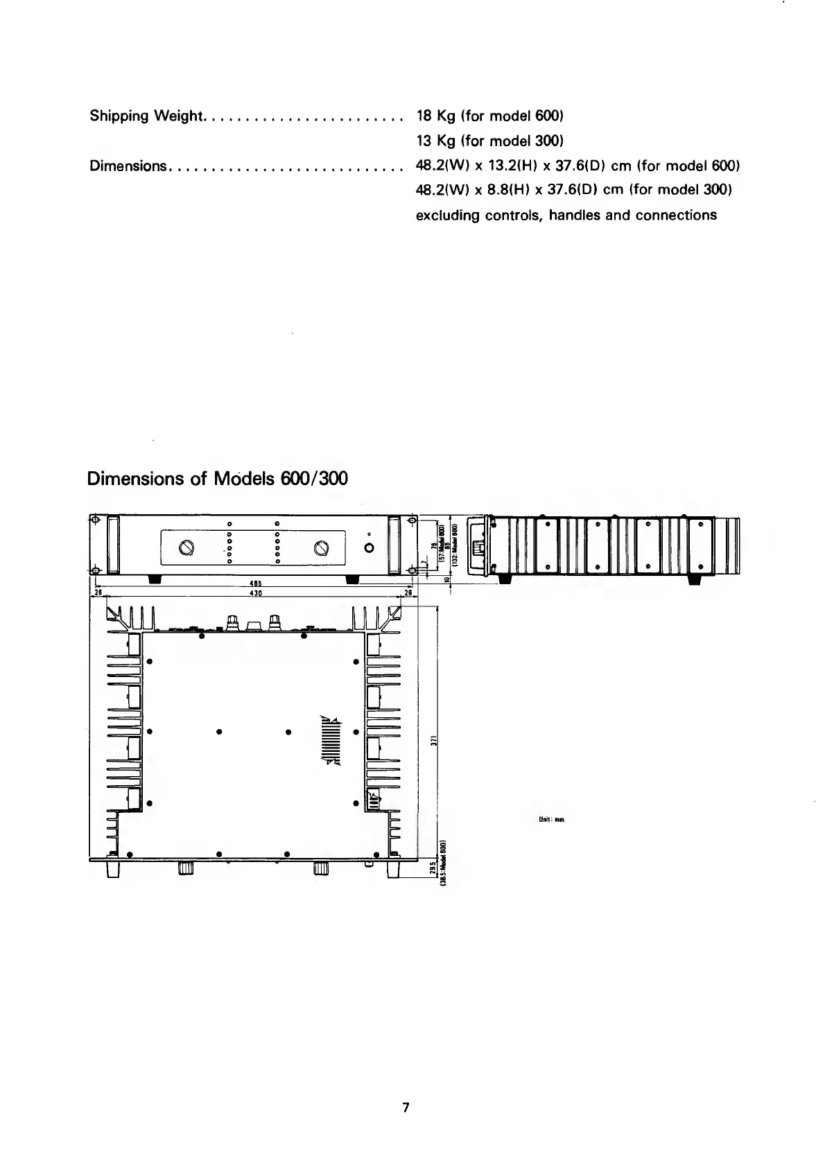 Fostex 600 - DIMENSIONS AND WEIGHT; Shipping Weight; Unit Dimensions