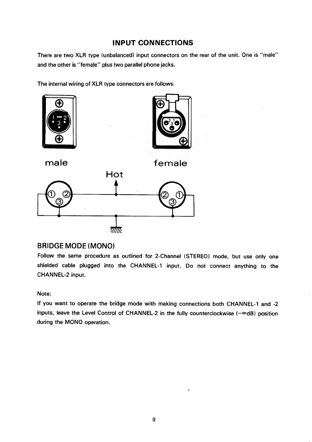 Fostex 600 - INPUT CONNECTIONS; BRIDGE MODE (MONO)