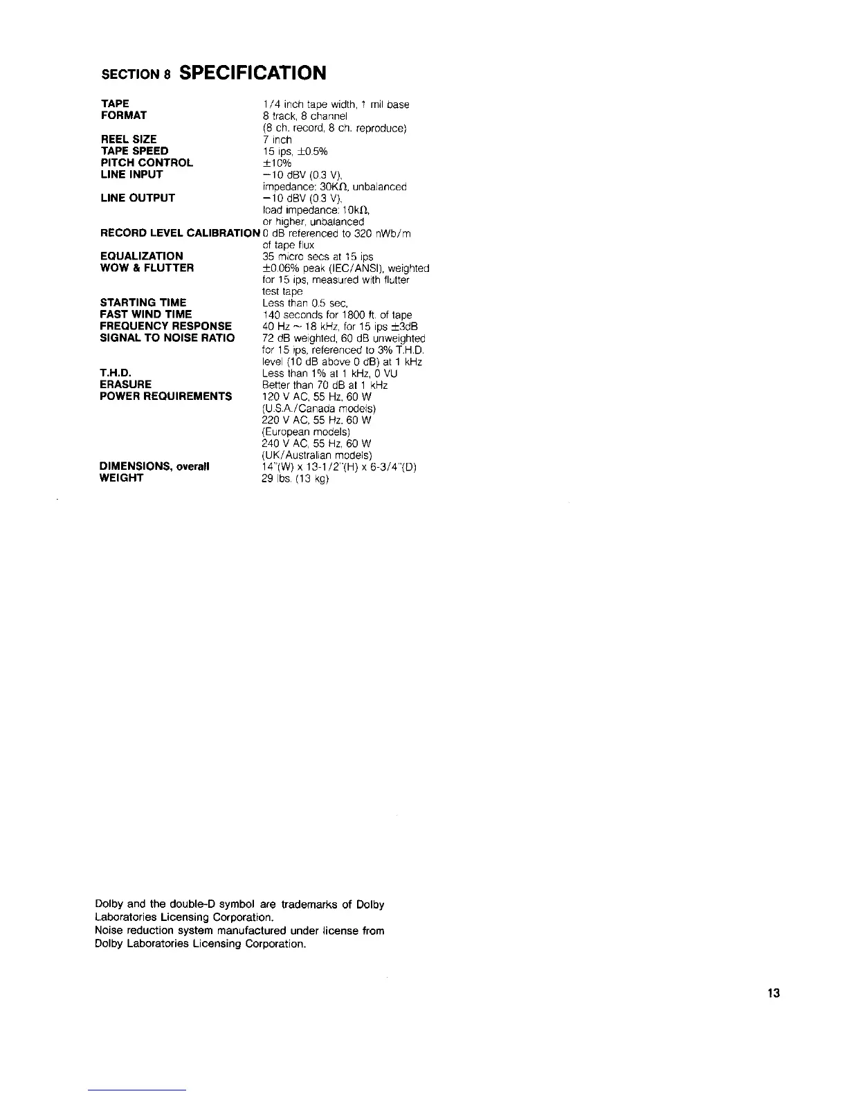 Fostex 80 - Section 8 Specification