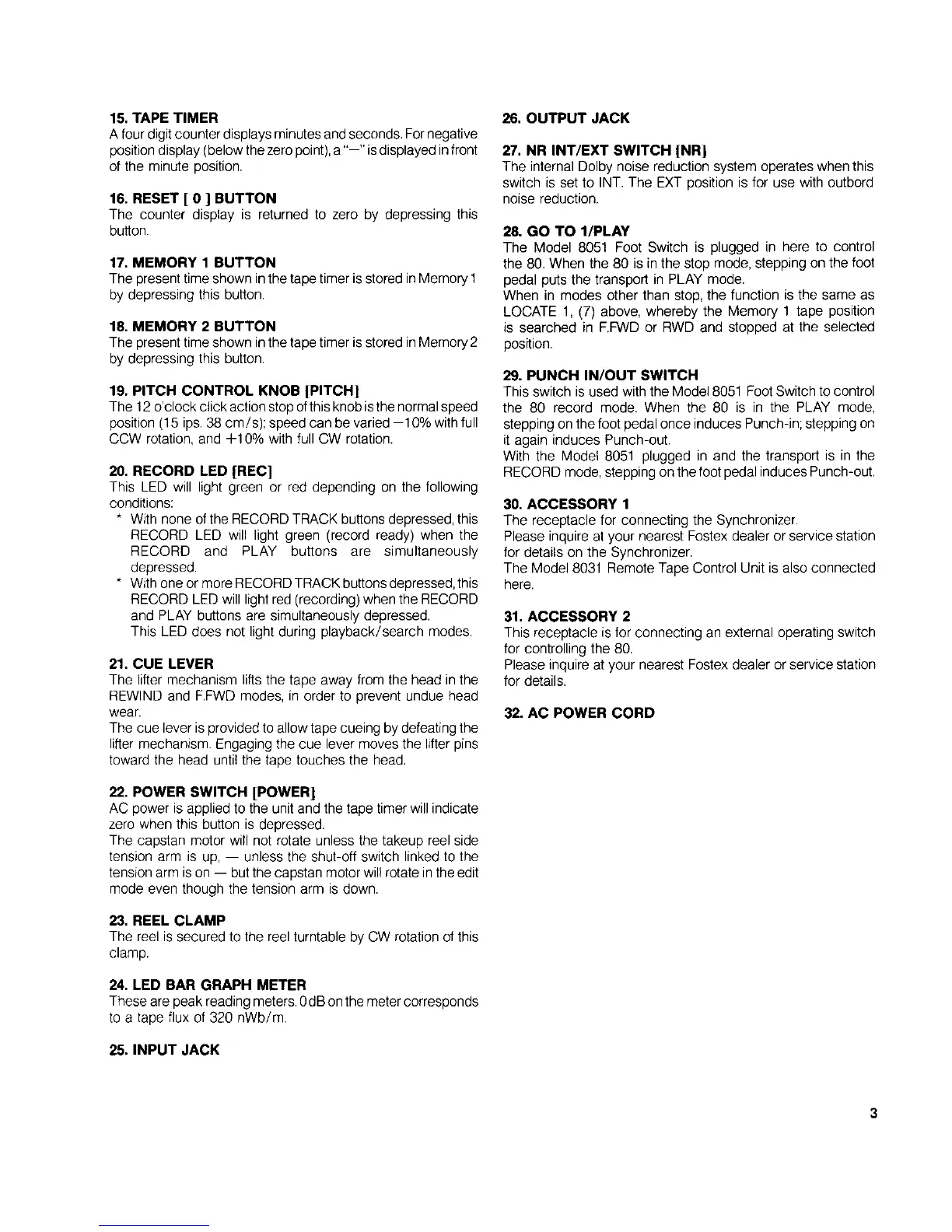 Fostex 80 - Pitch Control Knob; Go to 1;Play; Punch In;Out Switch