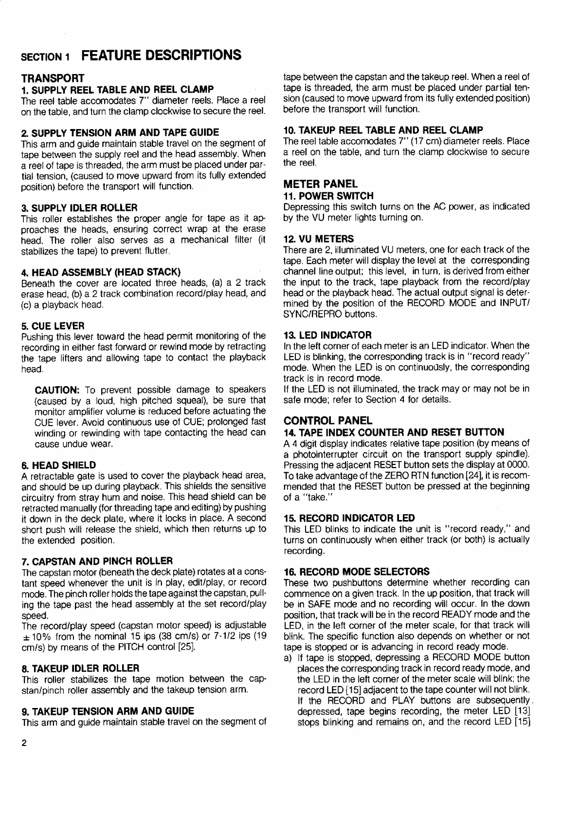 Fostex A-2 - Feature Descriptions; Meter Panel; Control Panel