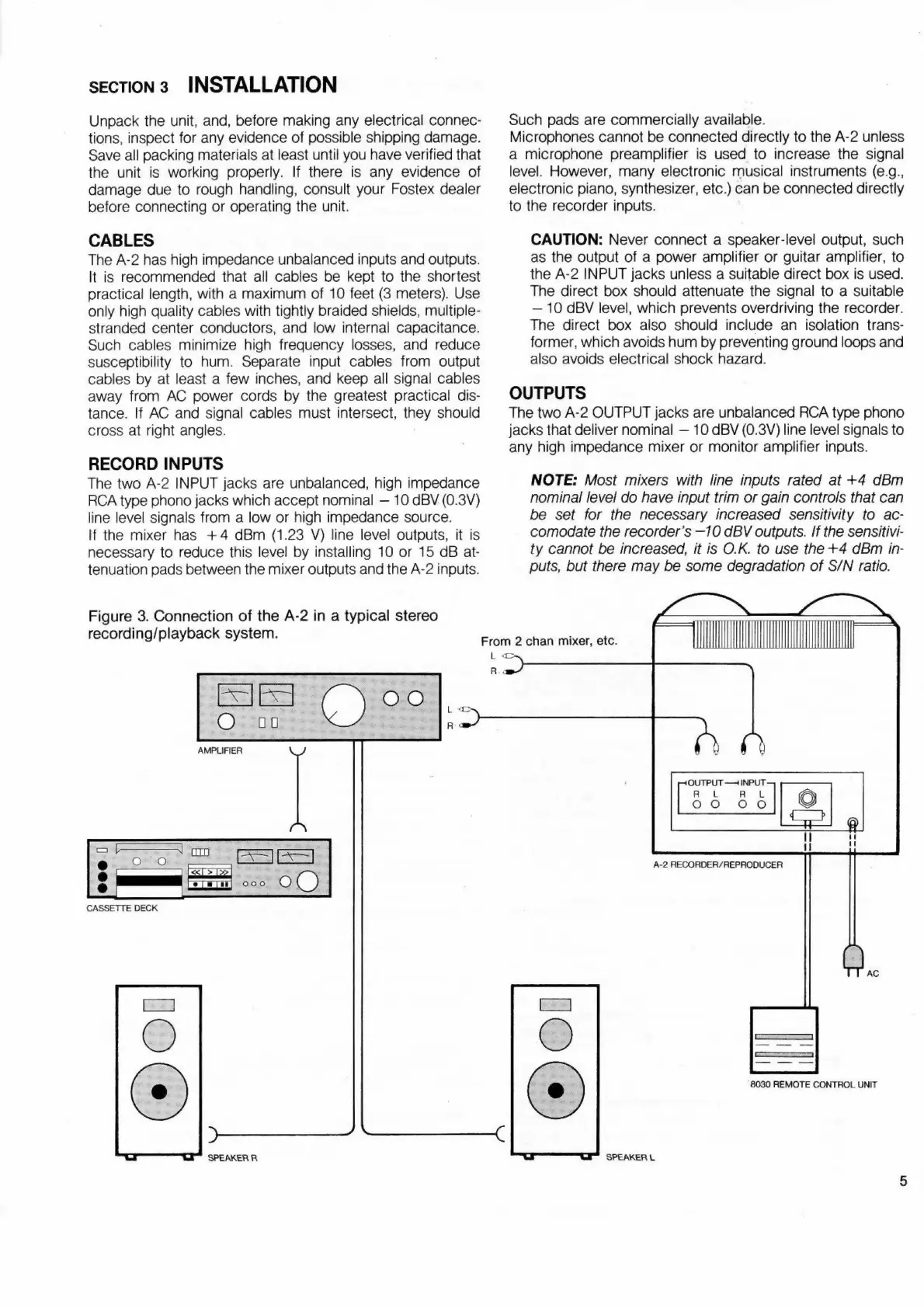Fostex A-2 - Installation; Record Inputs
