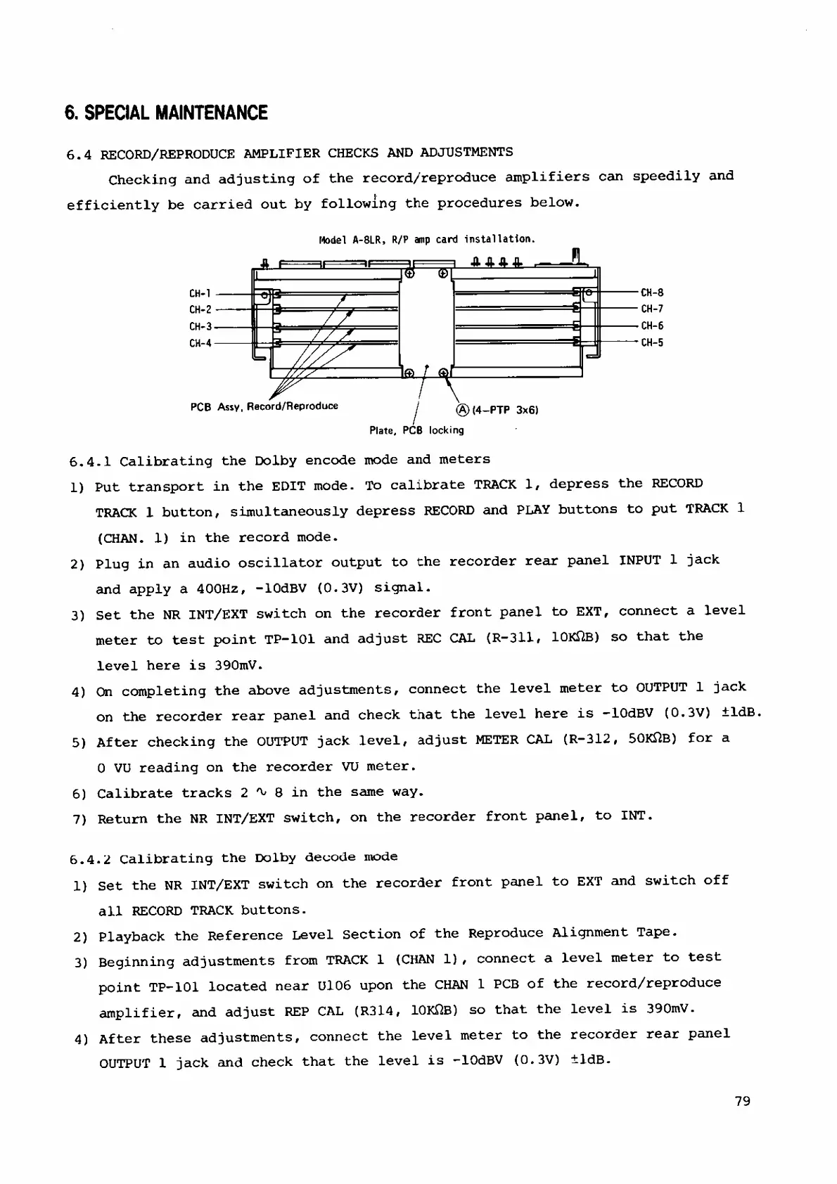 Fostex A-8 - 6. Special Maintenance (A-8 LR); Amplifier Calibration and Adjustments