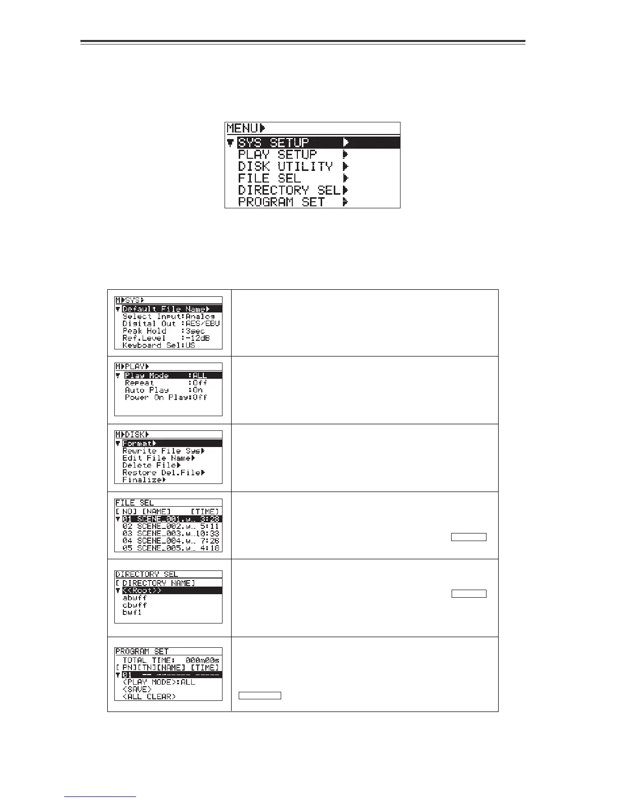 You can access to this screen by pressing the [FILE SEL/