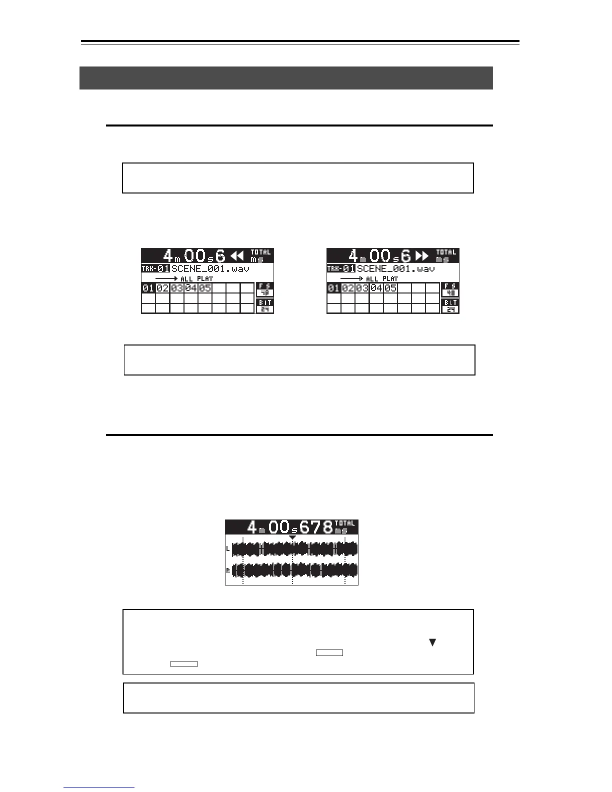 During playback, you can cue forward or backward by pressing the [F FWD] or [RE-