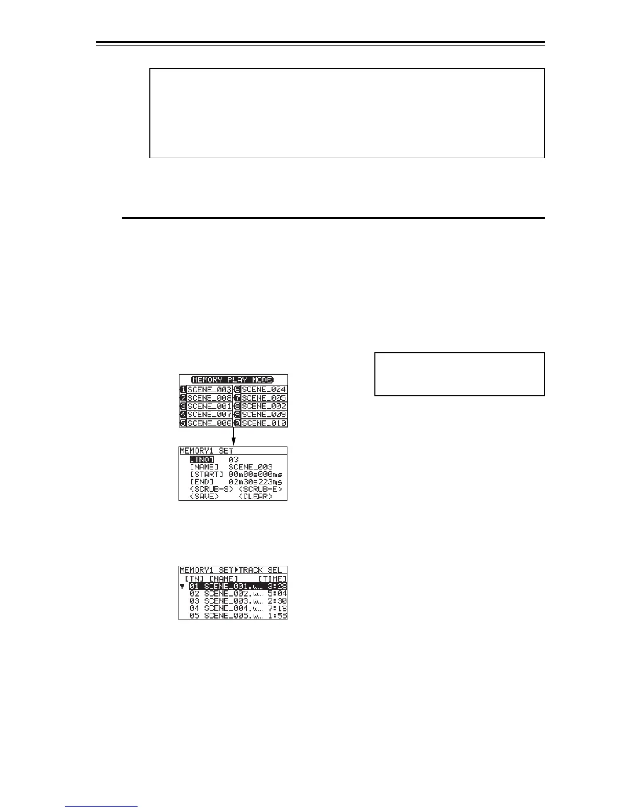 the MEMORY PLAY mode.