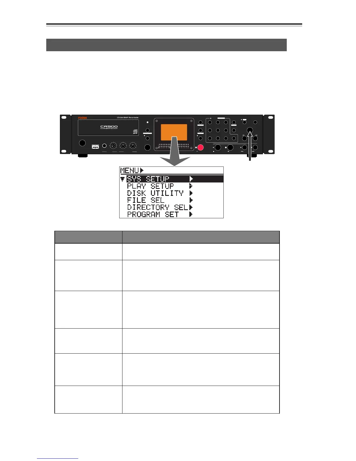 CD-R/RW MASTER RECORDER CR500 (MENU mode: SYSTEM SETUP menu)