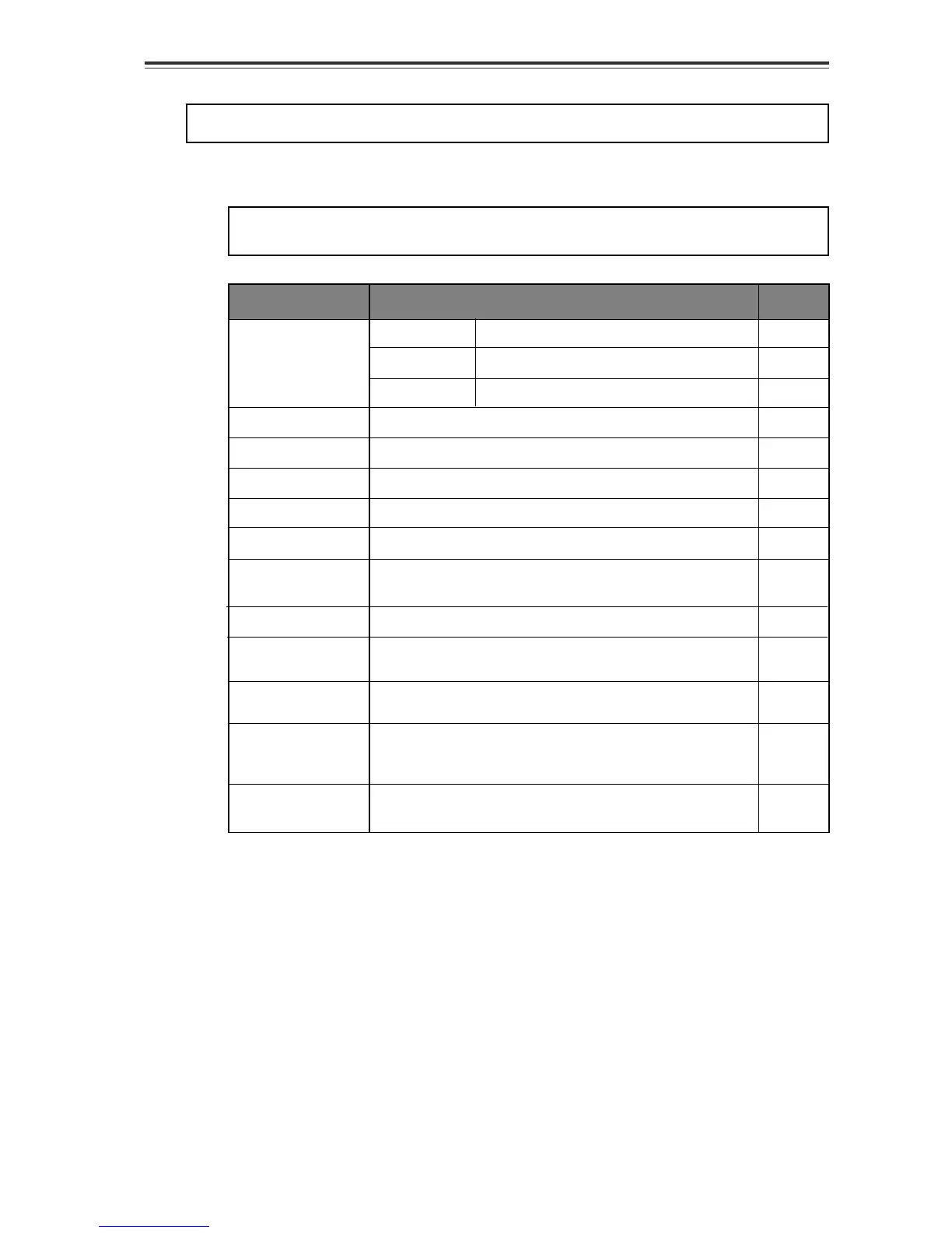 menu item name and available values (or action), as well as the default setting.
