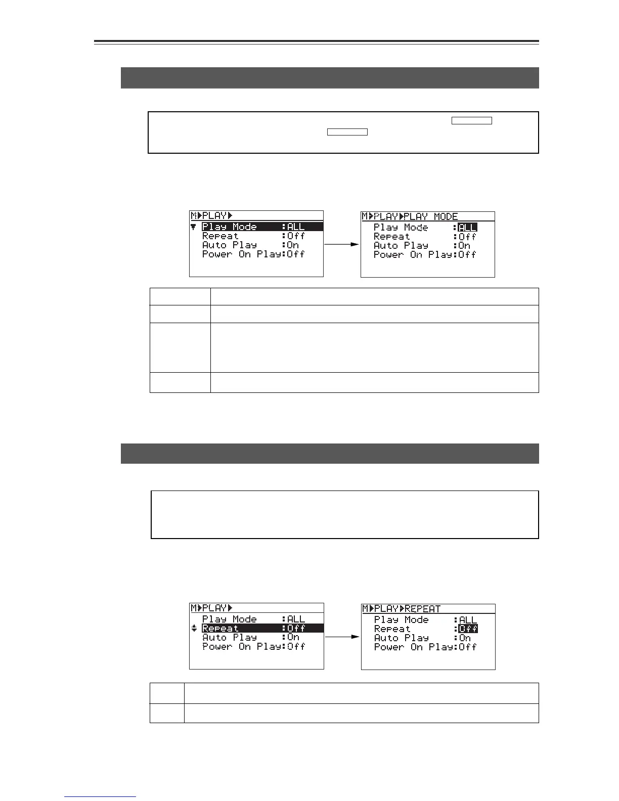 The selection using the [REPEAT] key is reflected to the PLAY SETUP menu screen.
