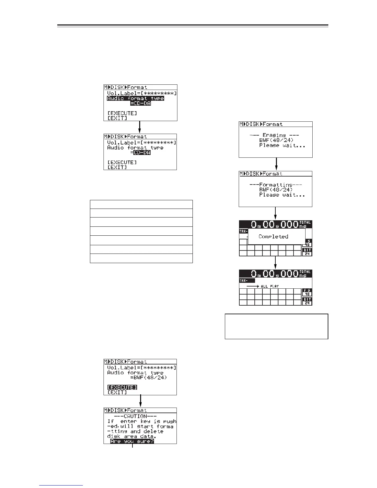 formatting the disc as shown in the screens