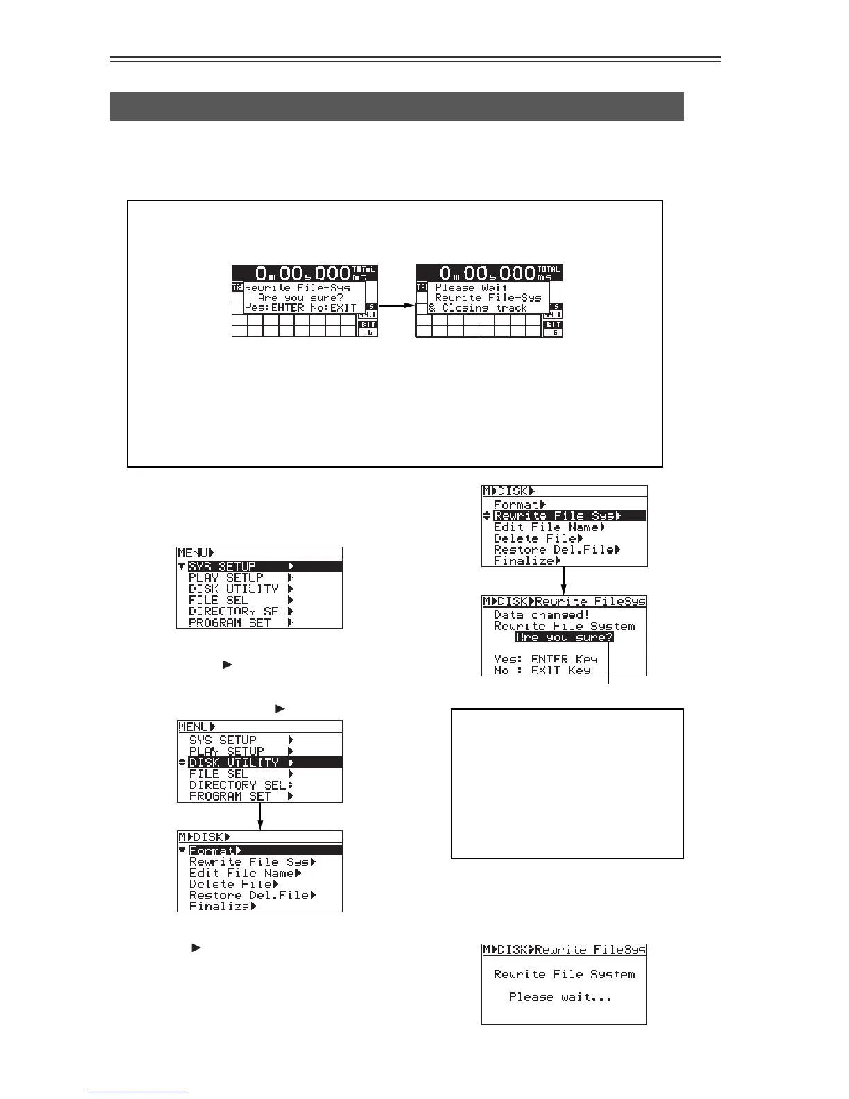 This menu item rewrites the file system. It is available only with a BWF formatted disc