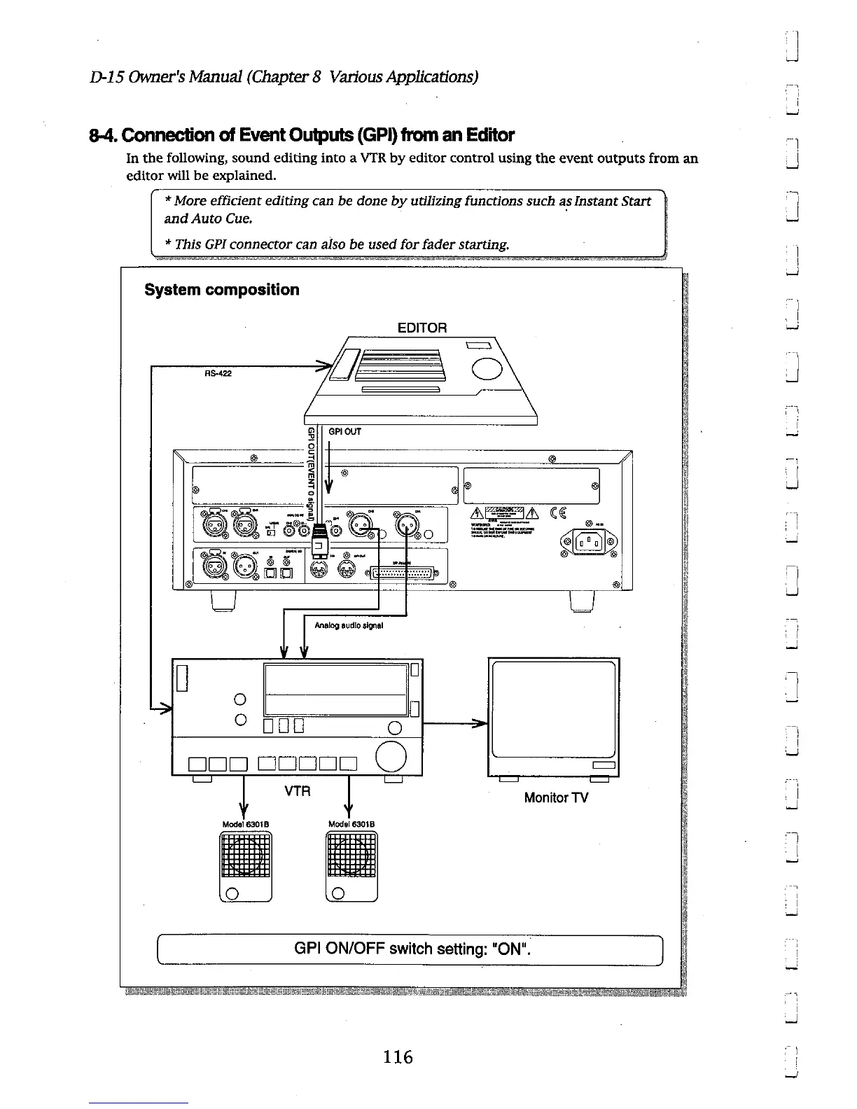 Fostex D-15 - Connection of Event Outputs from an Editor