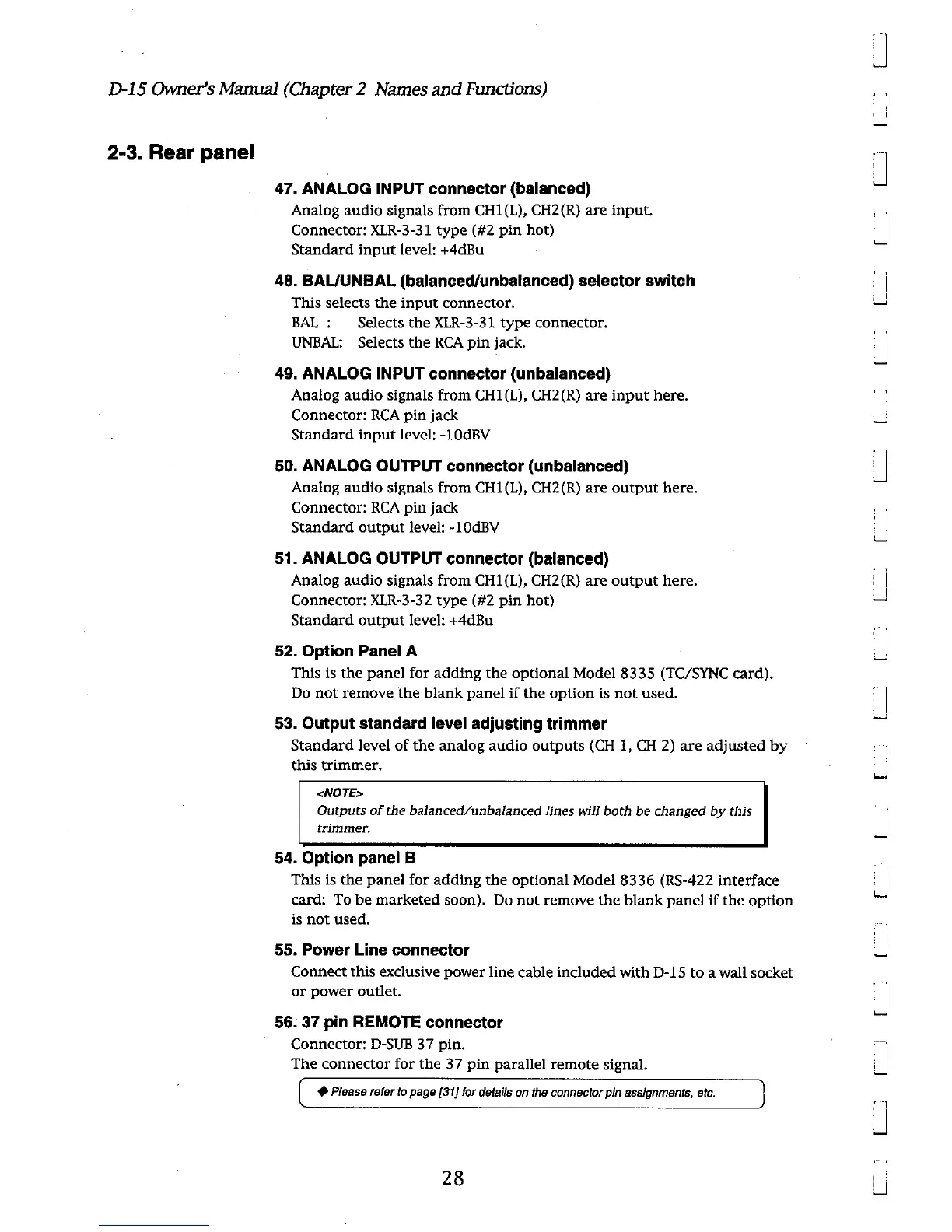 Fostex D-15 - 2-3. Rear panel