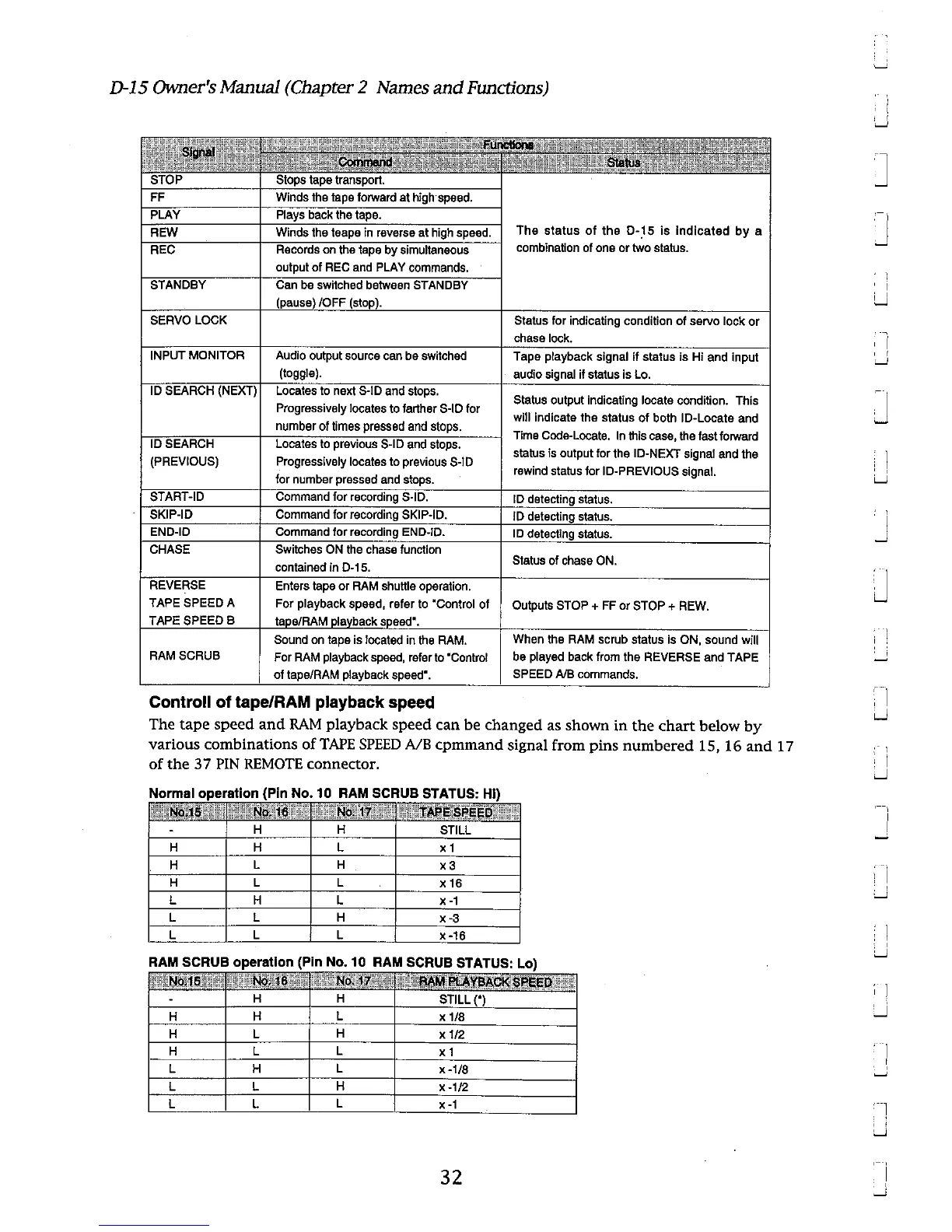 Fostex D-15 - Control of Tape;Ram Playback Speed; Normal Operation; RAM SCRUB Operation