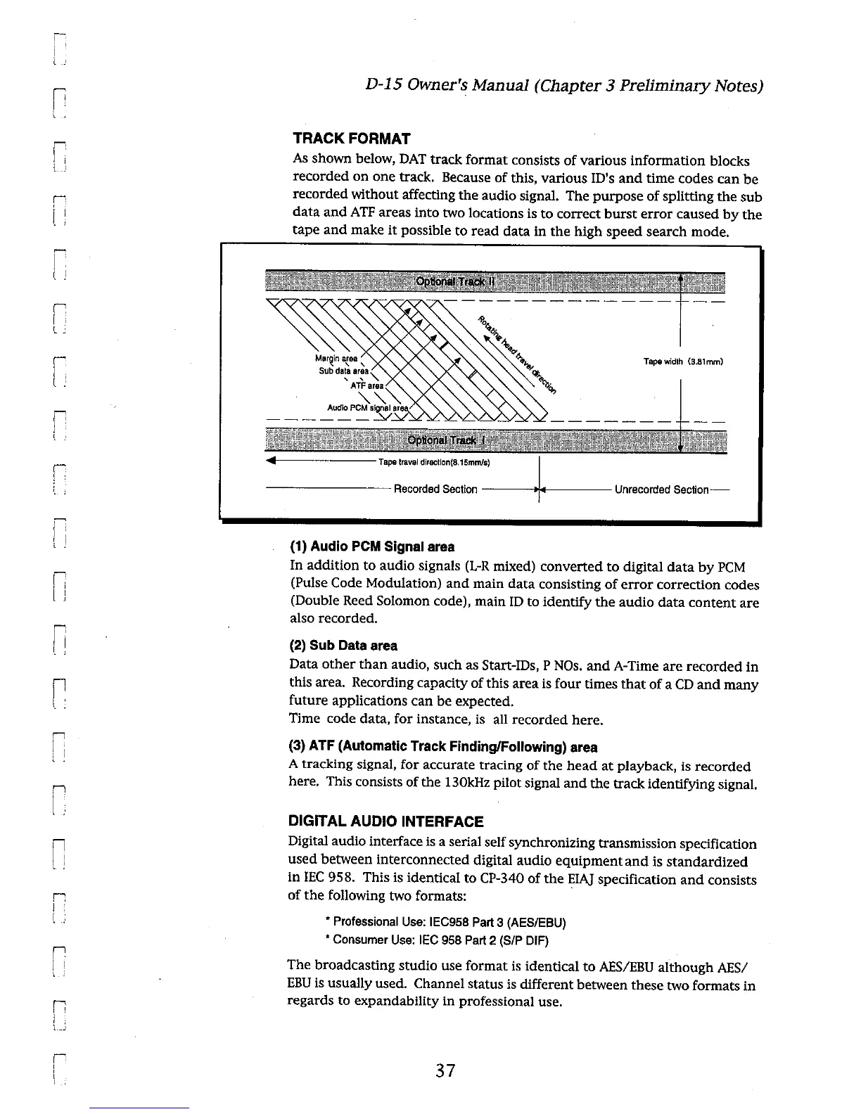 Fostex D-15 - Track Format; Digital Audio Interface; Audio PCM Signal Area; Sub Data Area