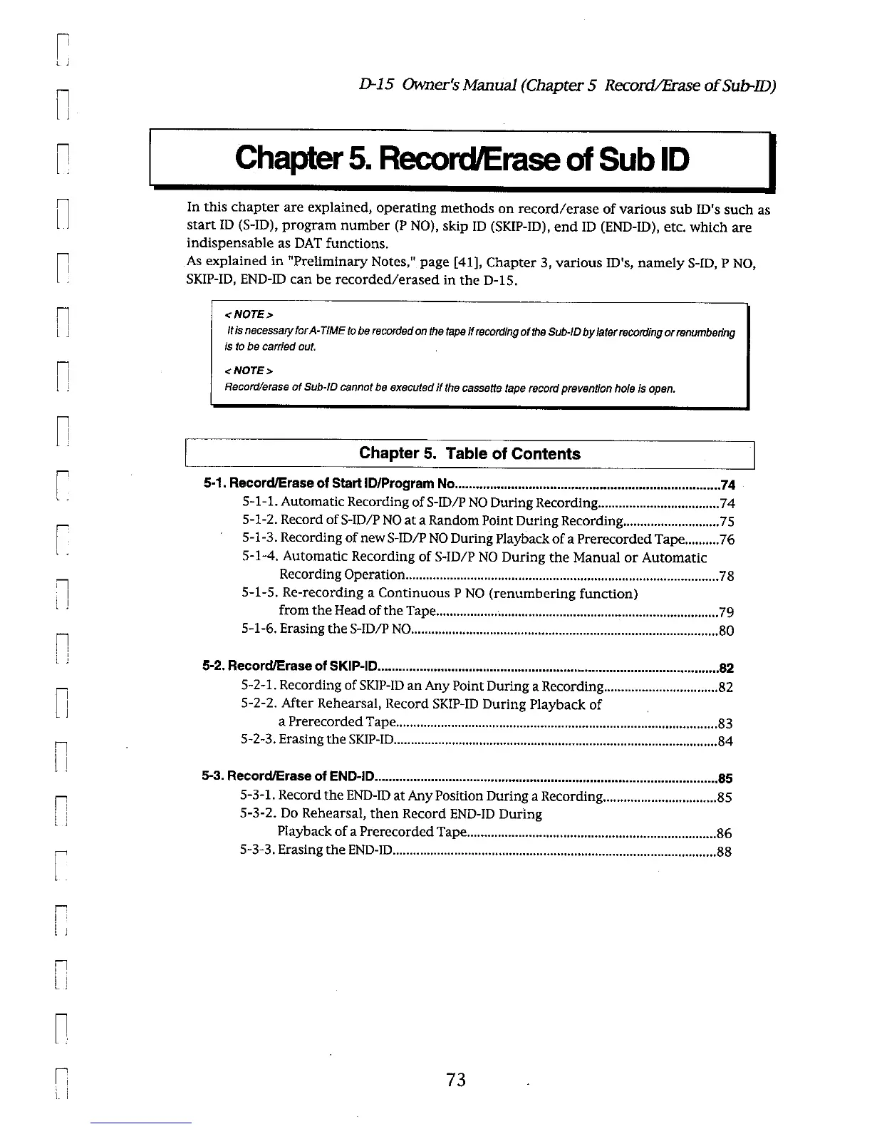 Fostex D-15 - Chapter 5. Record;Erase of Sub-ID; 5-1. Record;Erase of Start ID;Program No.