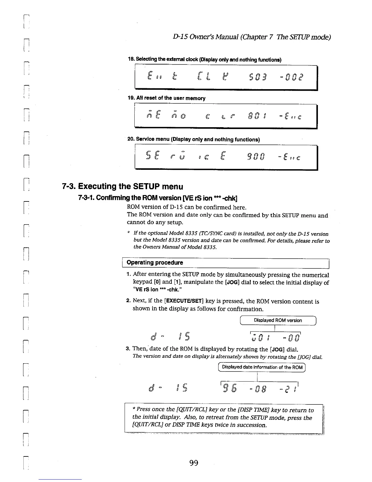 Fostex D-15 - Executing the Setup Menu; Confirming the ROM Version