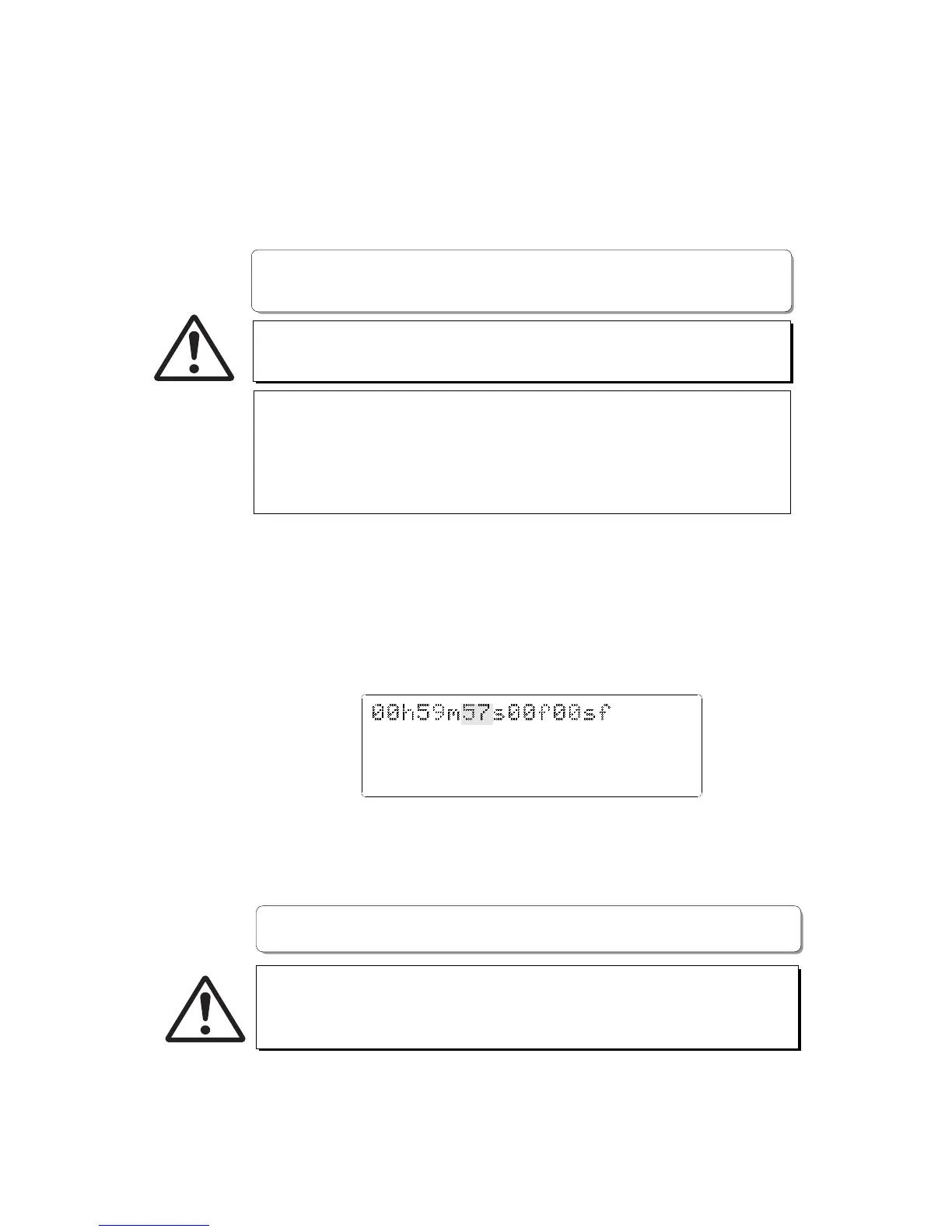 4. Use either the HOLD/> key or SHUTTLE dial to choose time digits, i.e. “h”, “m”, “s”, “f”, “sf”.