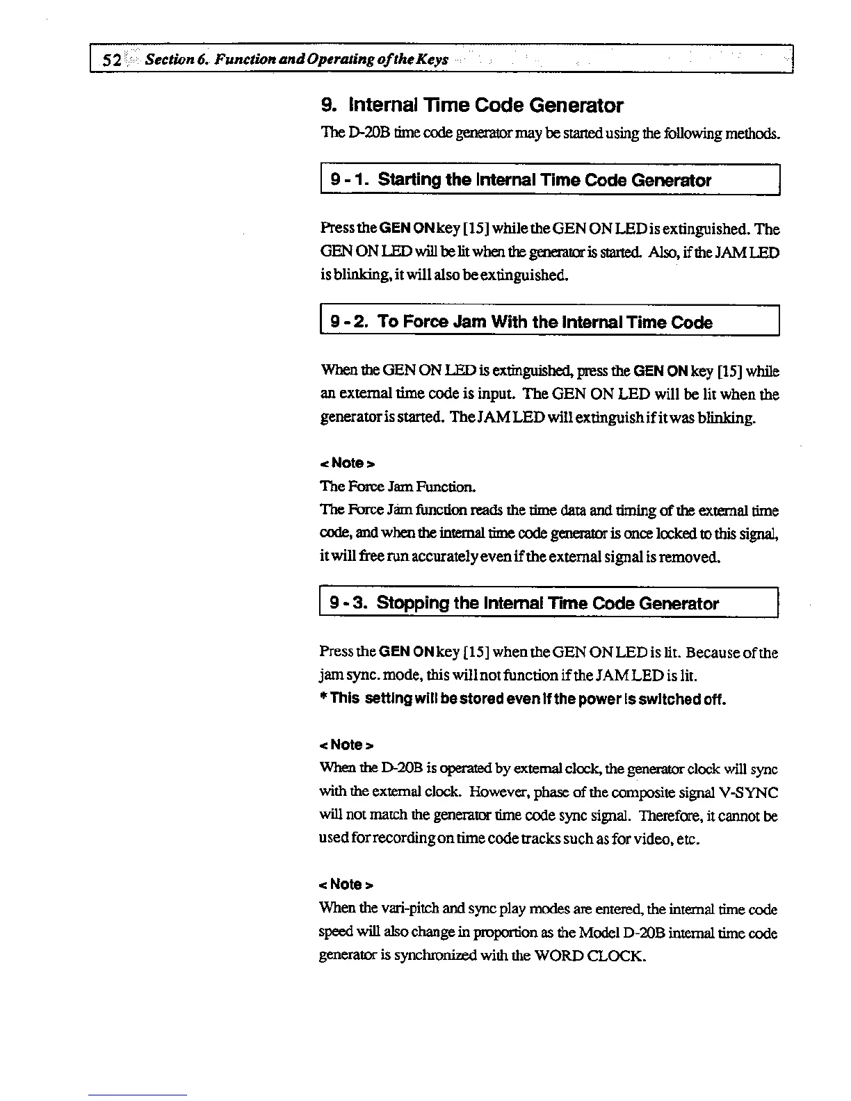 Fostex D-20B - Internal Time Code Generator; Starting the Internal Time Code Generator; To Force Jam with the Internal Time Code; Stopping the Internal Time Code Generator
