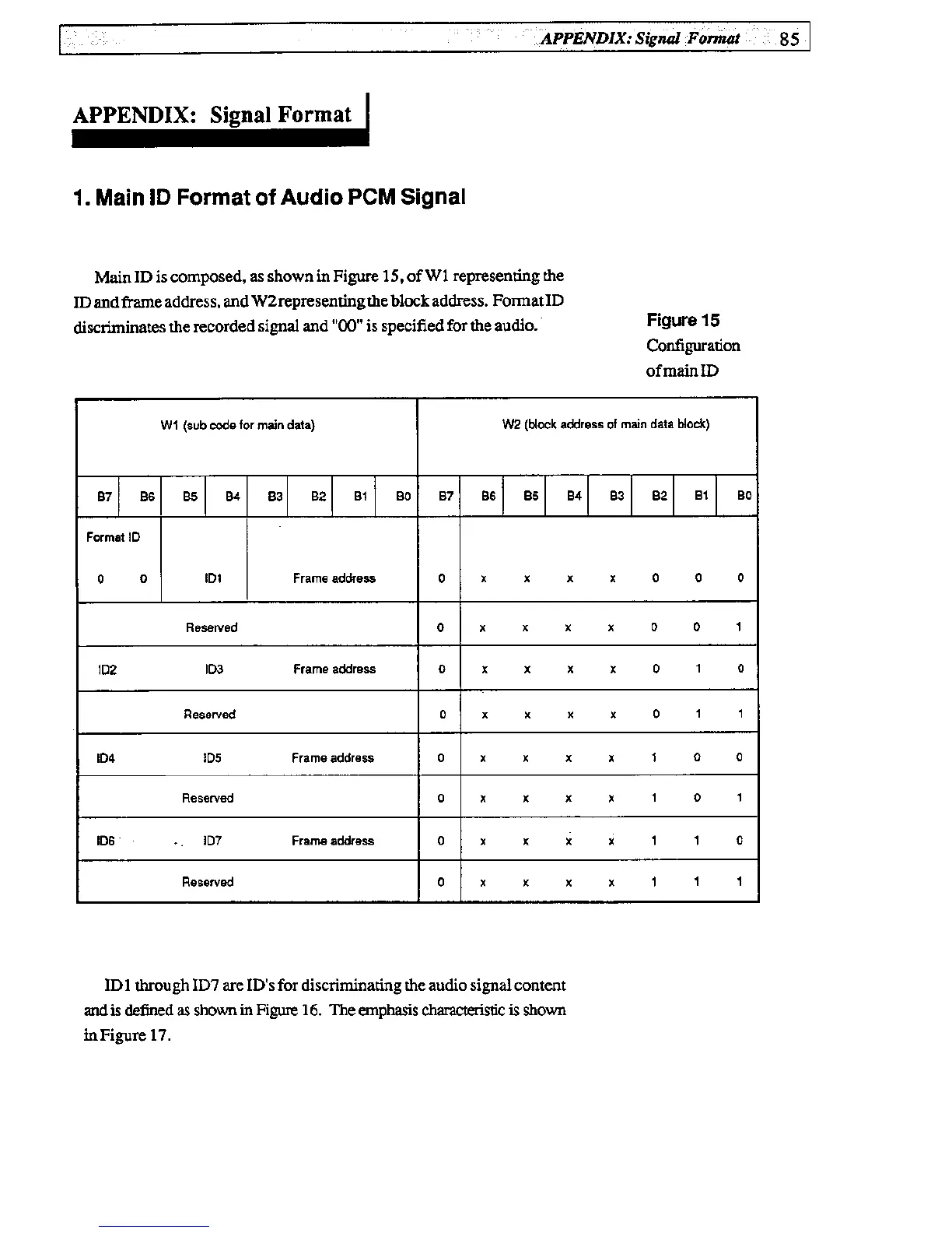 Fostex D-20B - Signal Format; Main ID Format of Audio PCM Signal