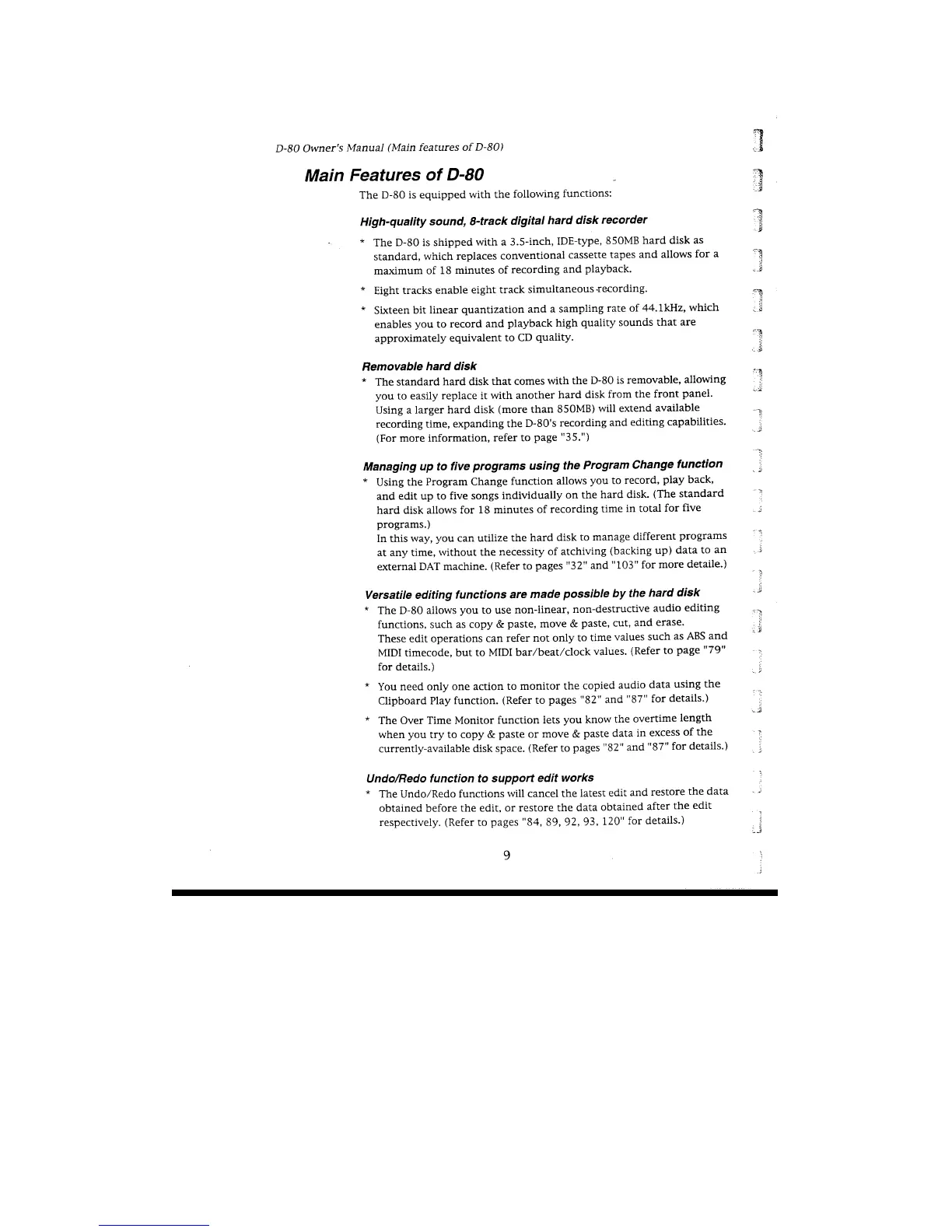 Fostex D-80 - Main Features of the Fostex D-80; Removable Hard Disk; Versatile Editing Functions; Undo;Redo Function for Editing
