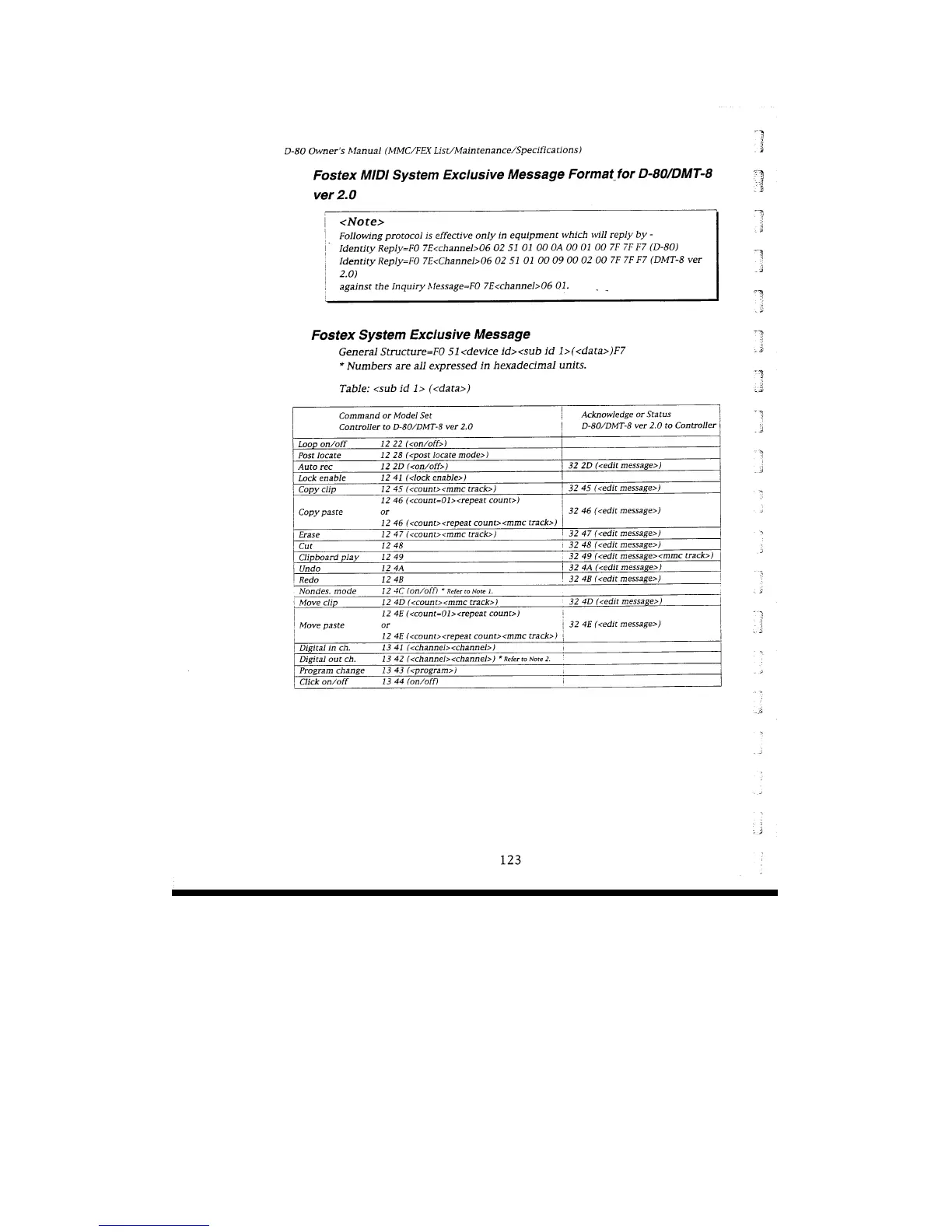 Fostex D-80 - Fostex MIDI System Exclusive Message Format