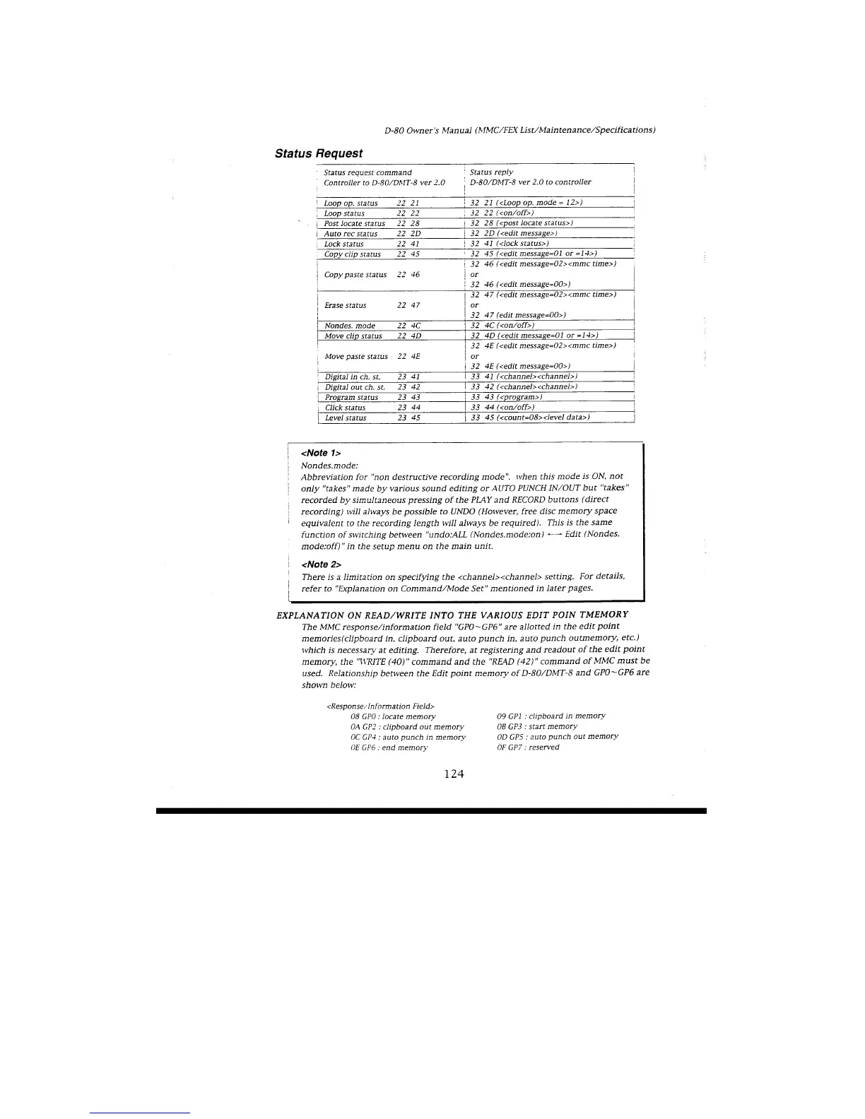 Fostex D-80 - Status Request; Explanation on Read;Write into the Various Edit Point Memory