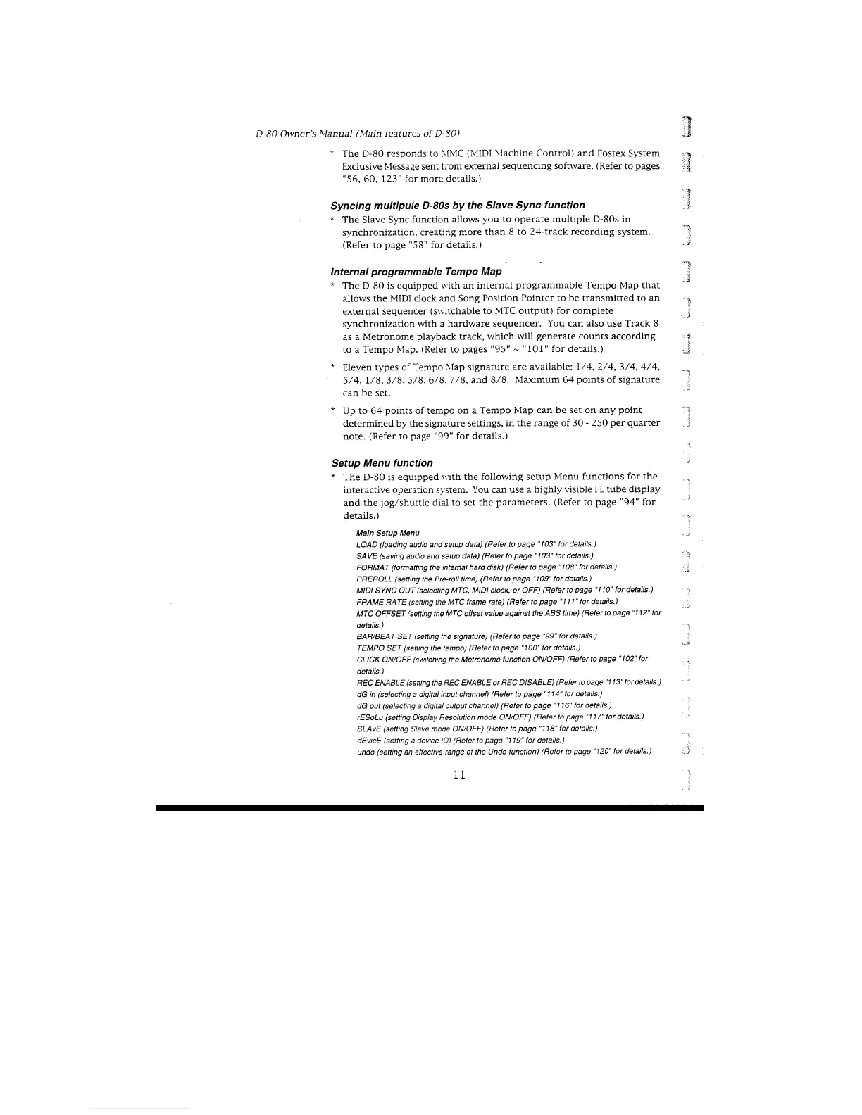 Fostex D-80 - MIDI Functionality; Syncing Multiple D-80 s; Setup Menu Function; Names and Functions
