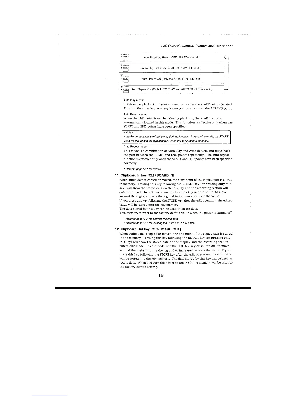 Fostex D-80 - Clipboad in Key (Clipboard In); Clipboard out Key (Clipboard Out)