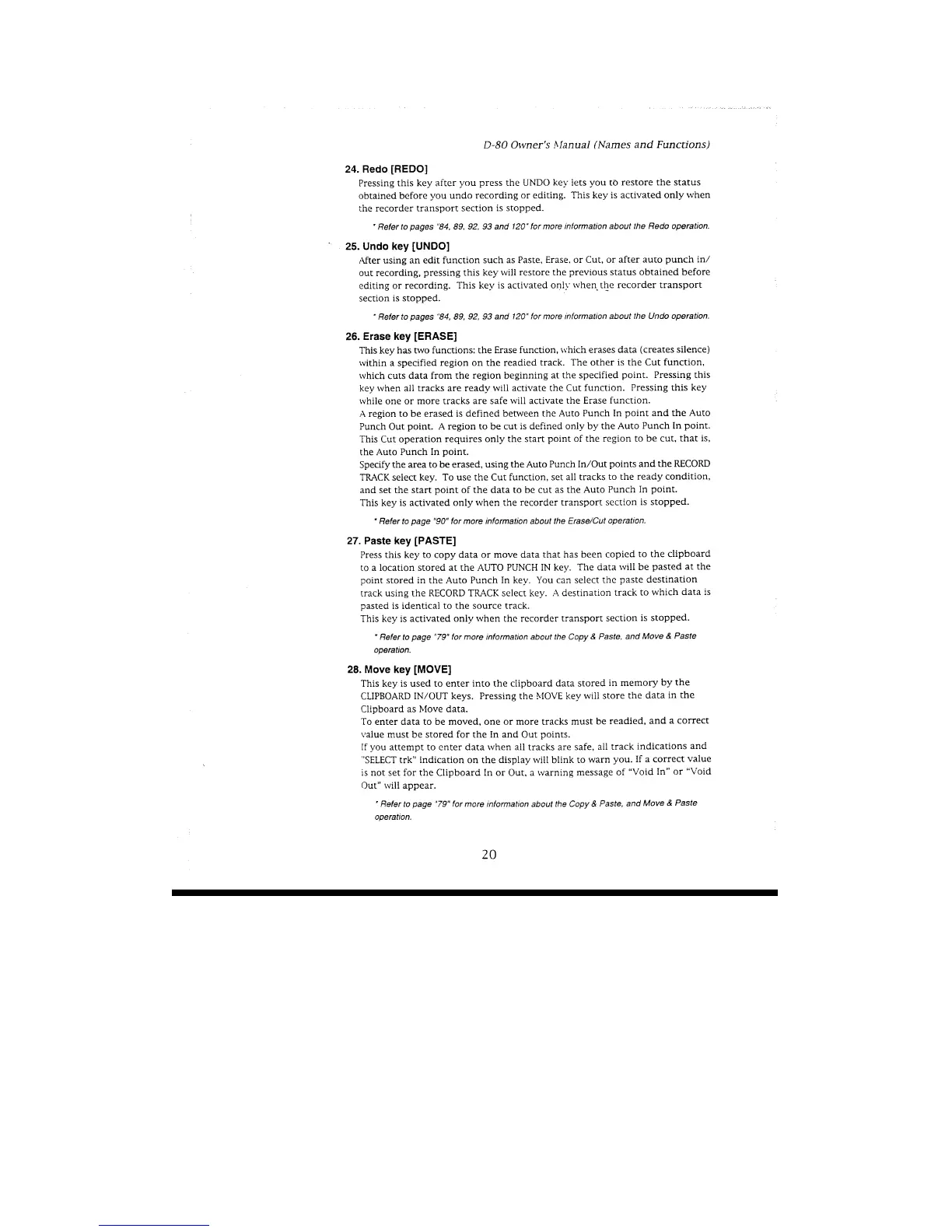 Fostex D-80 - Redo; Undo Key; Erase Key; Paste Key;Move Key