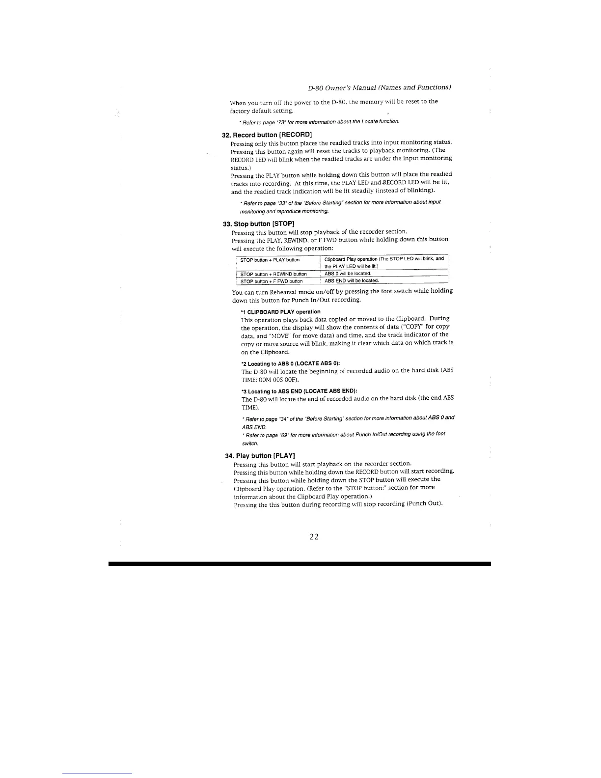 Fostex D-80 - Record Button; Stop Button; Play Button