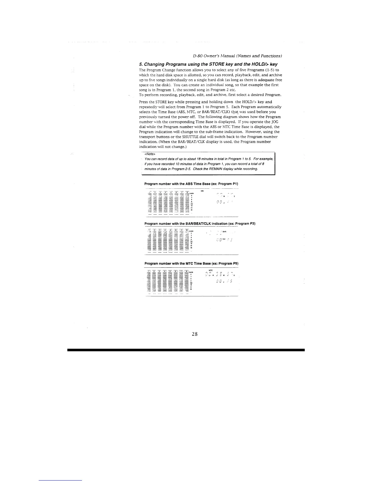 Fostex D-80 - Changing Programs Using the Store Key and the Hold; Key