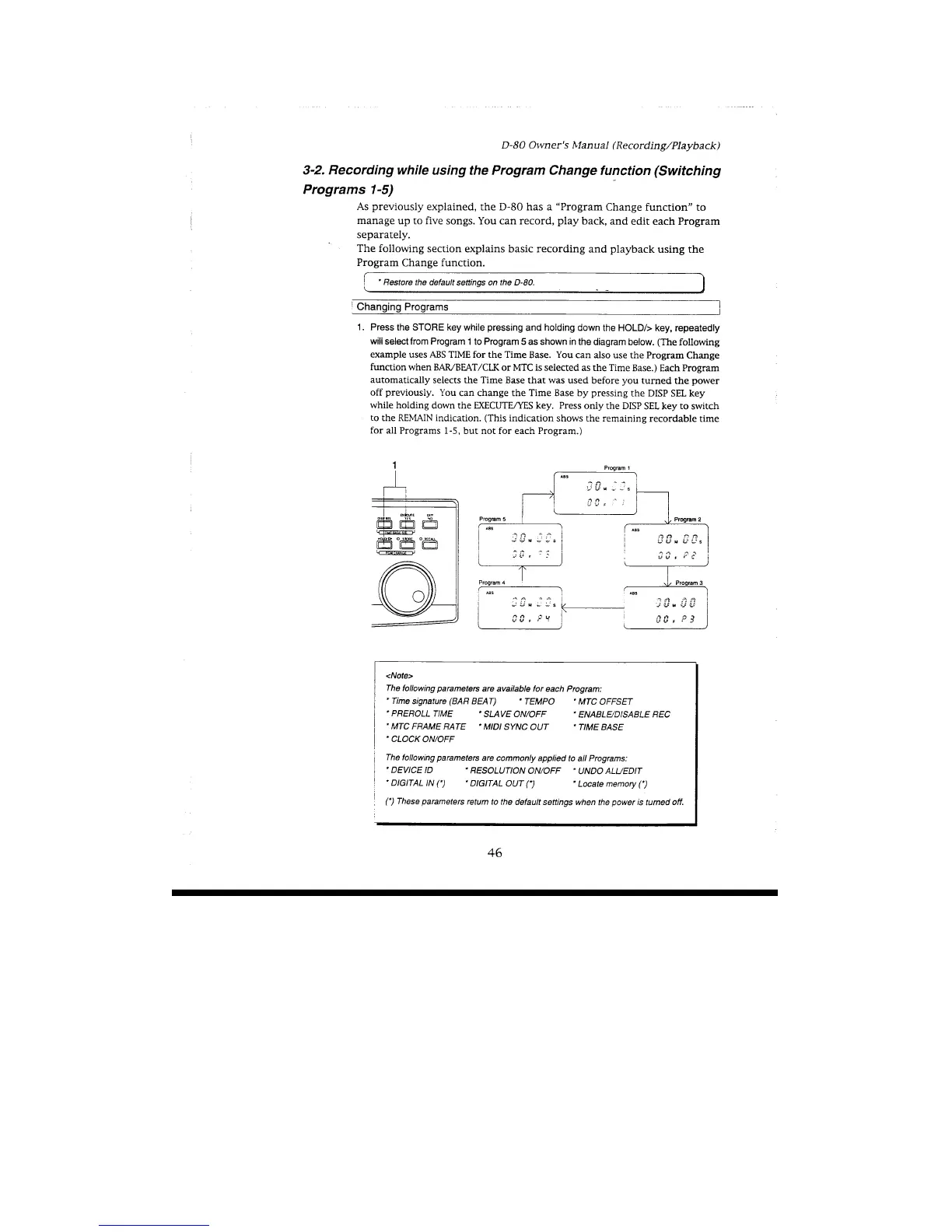 Fostex D-80 - Recording While Using the Program Change Function; Changing Programs