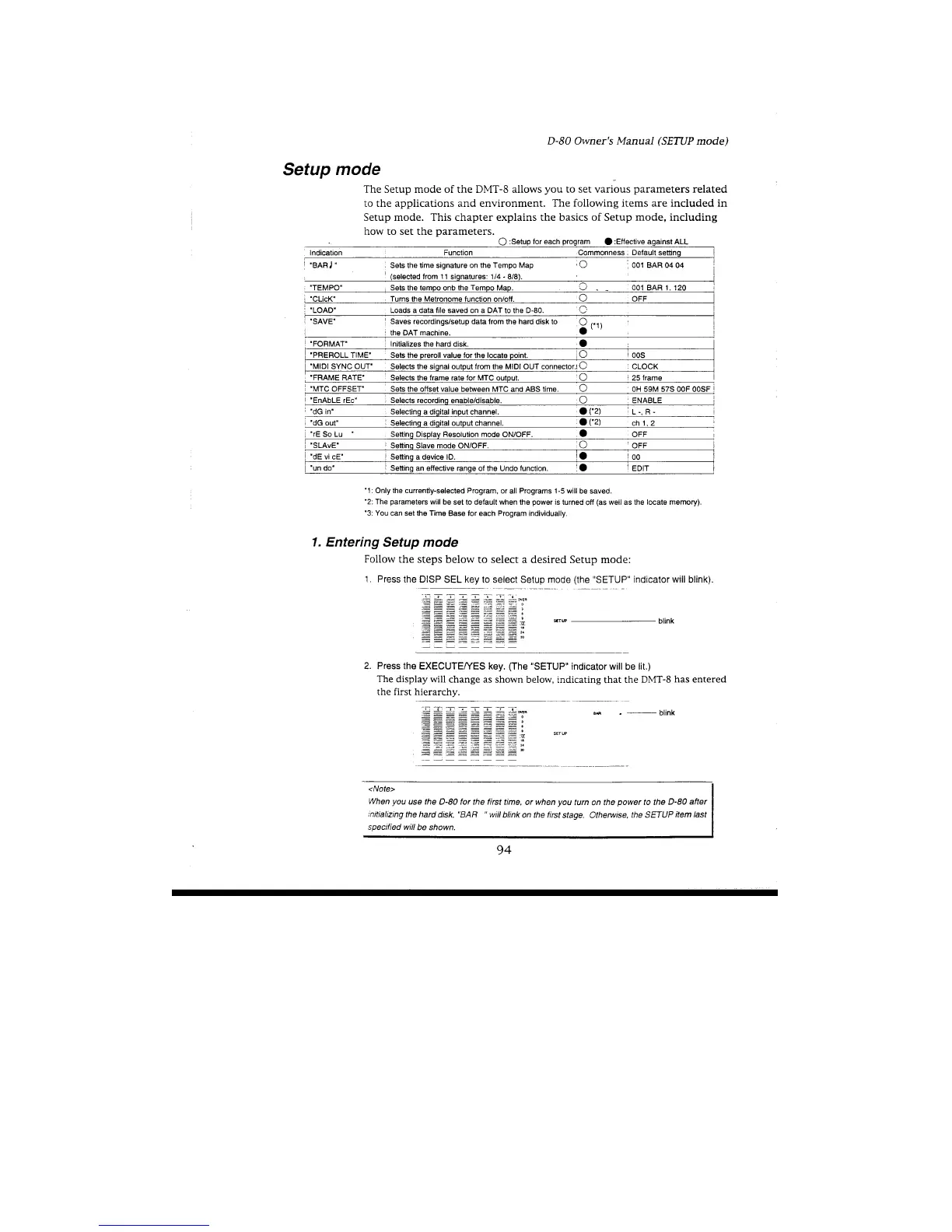 Fostex D-80 - SETUP Mode; Entering Setup Mode