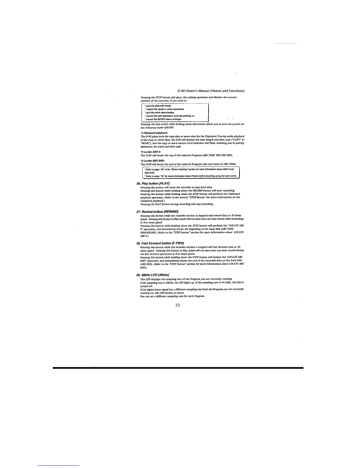 Fostex D-90 - Play Button; Rewind Button; Fast Forward Button; 48 Khz LED