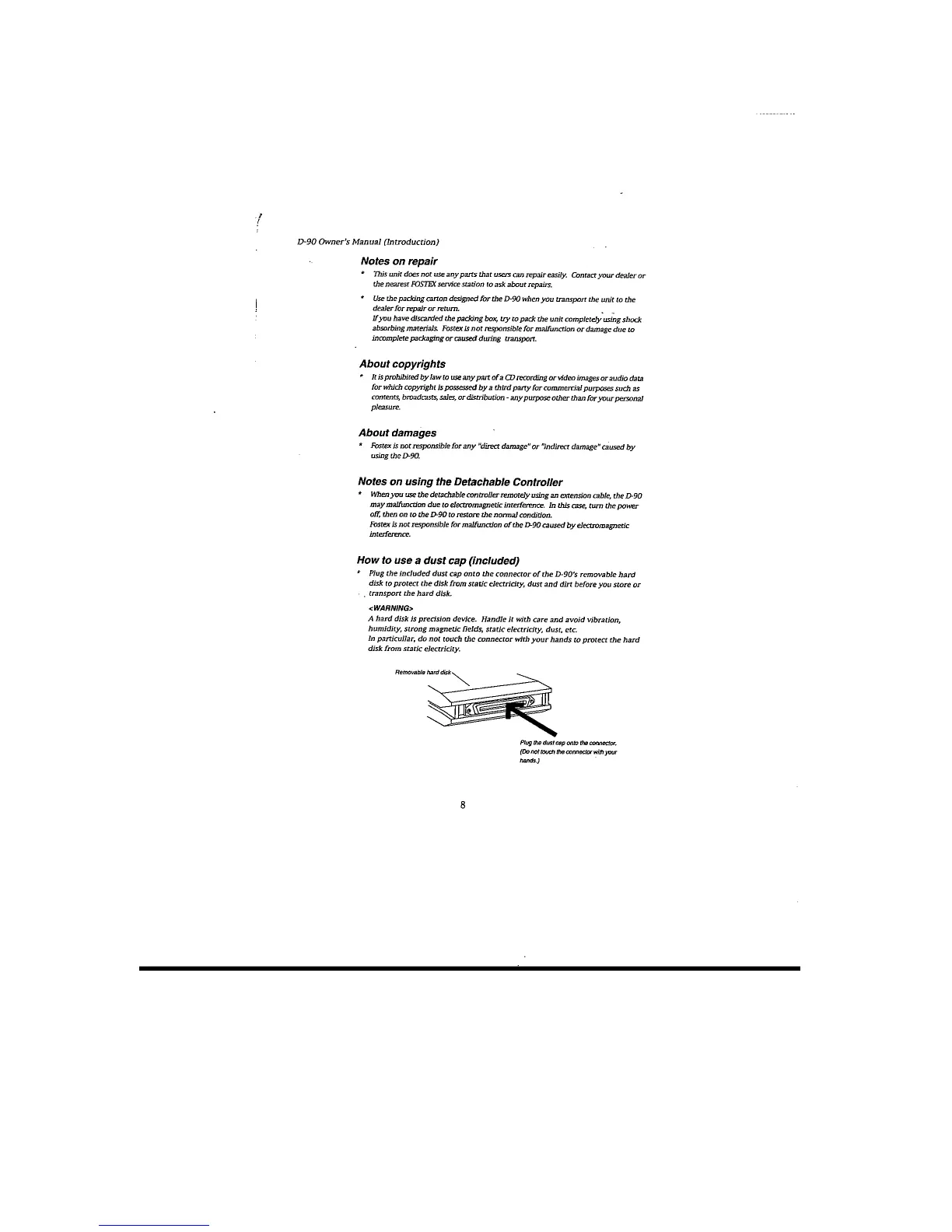 Fostex D-90 - Notes on Using the Detachable Controller; How to Use a Dust Cap