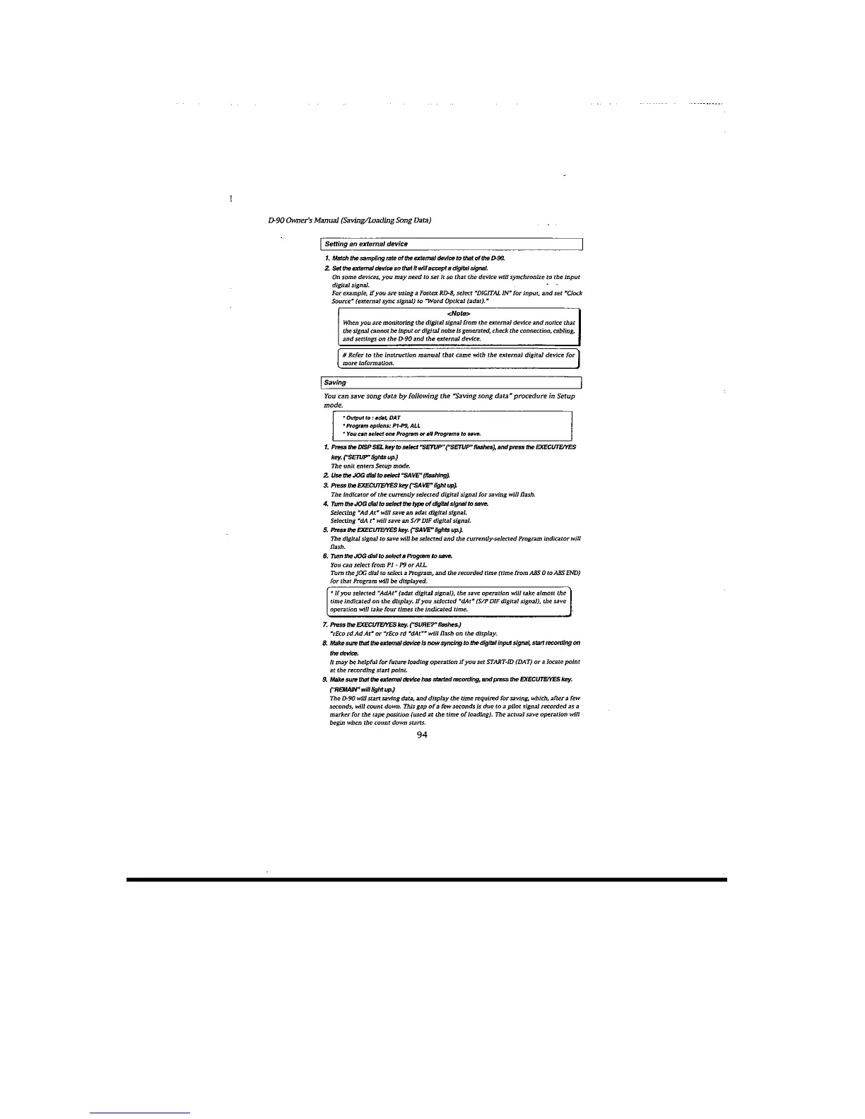 Fostex D-90 - Setting an External Device; Saving