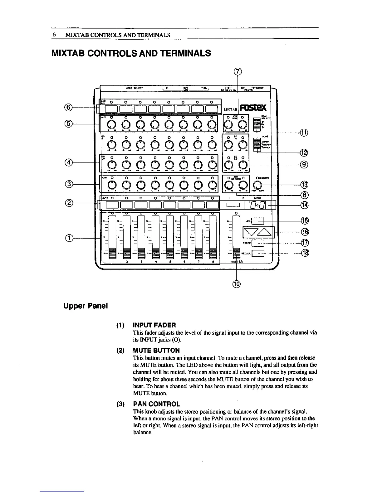 Fostex DCM100 - Mixtab Controls and Terminals; Upper Panel